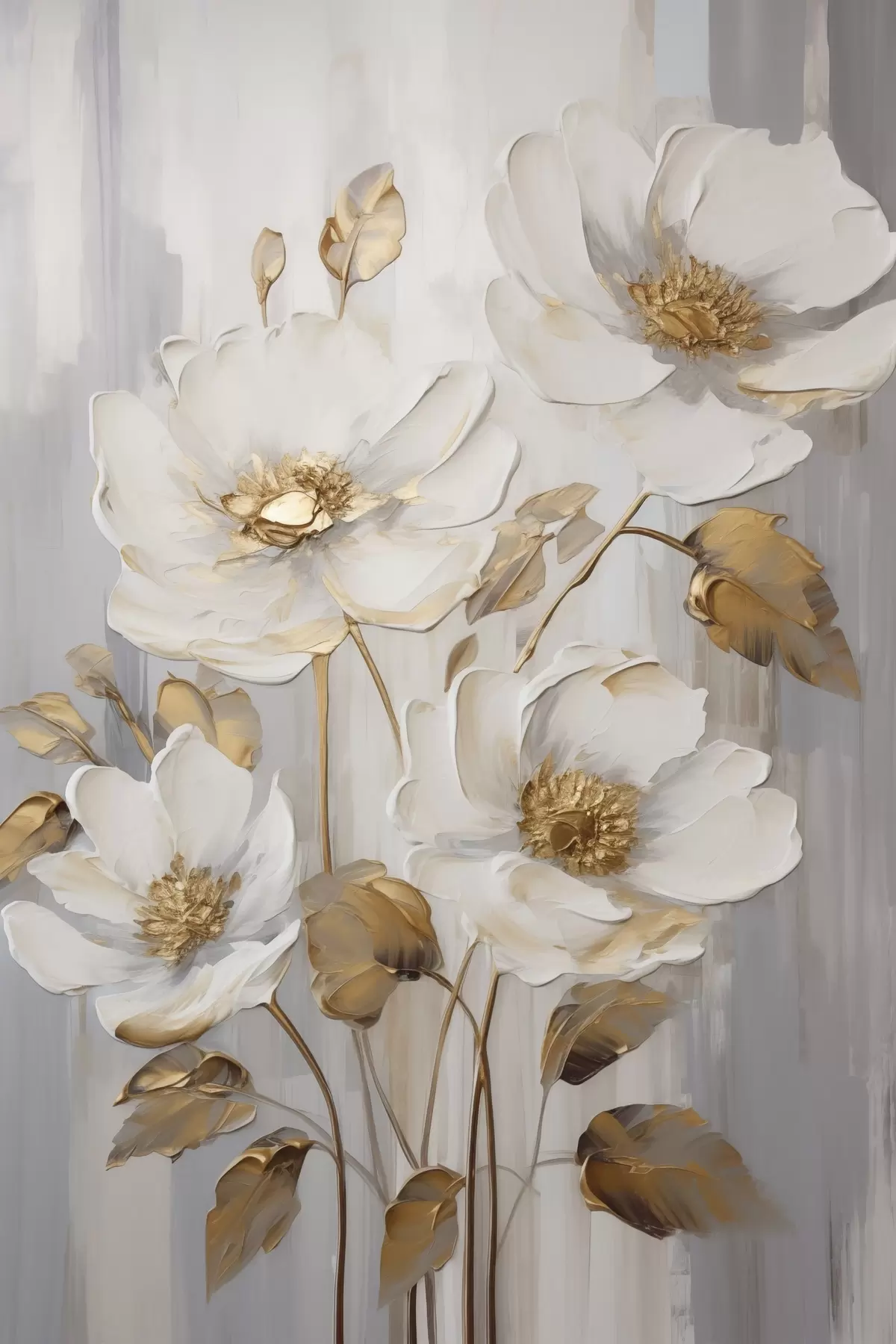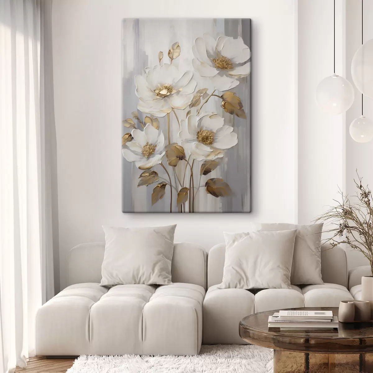 Obraz Białe kwiaty z żółtymi akcentami na teksturowanym tle Nr s48722