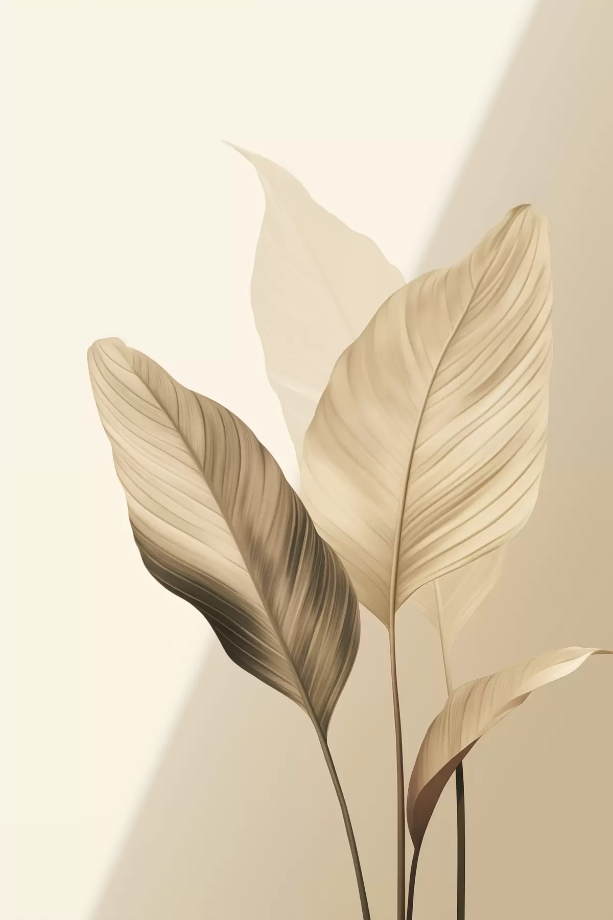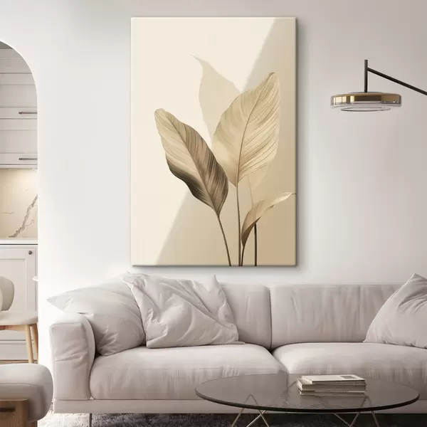 Obraz Duże tropikalne liście w odcieniach beżu i brązu, jasne tło Nr s48726