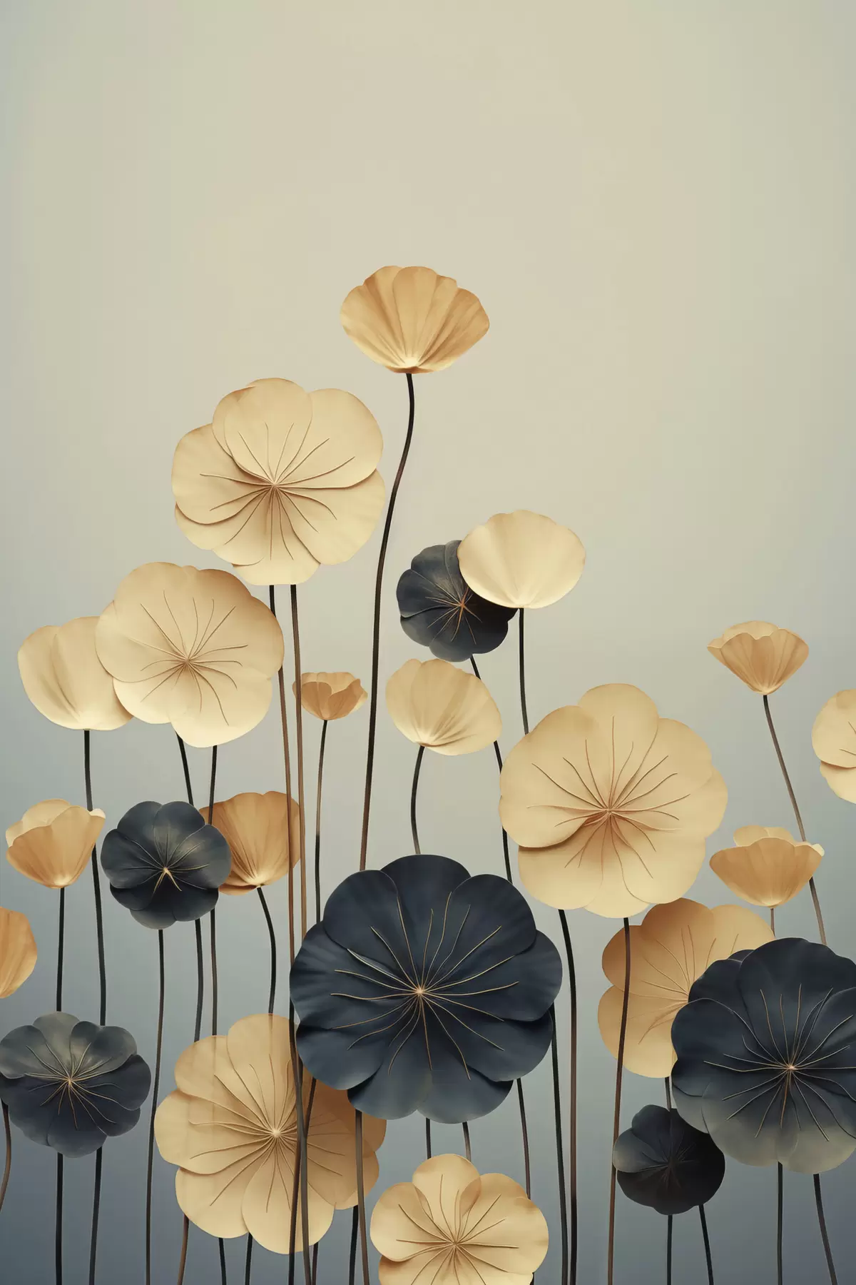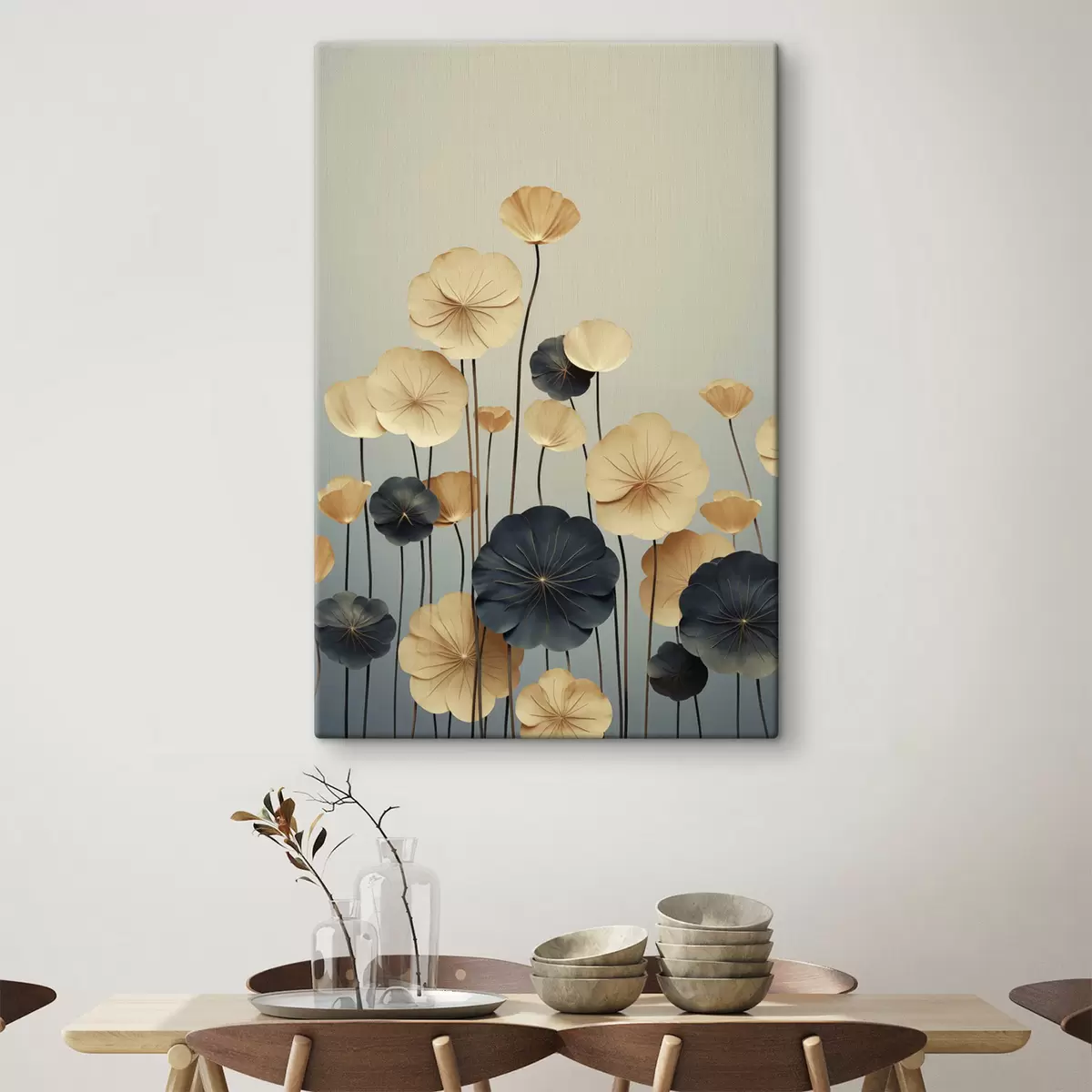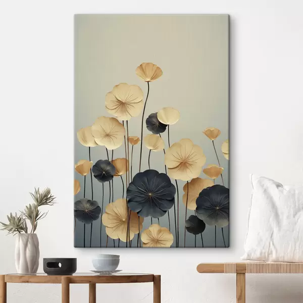 Obraz Liście lilii wodnej na stonowanym tle w odcieniach beżu i ciemnego błękitu Nr s48734