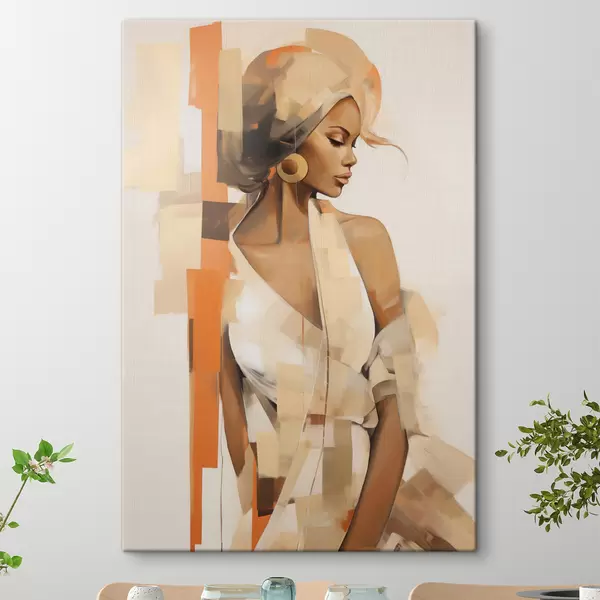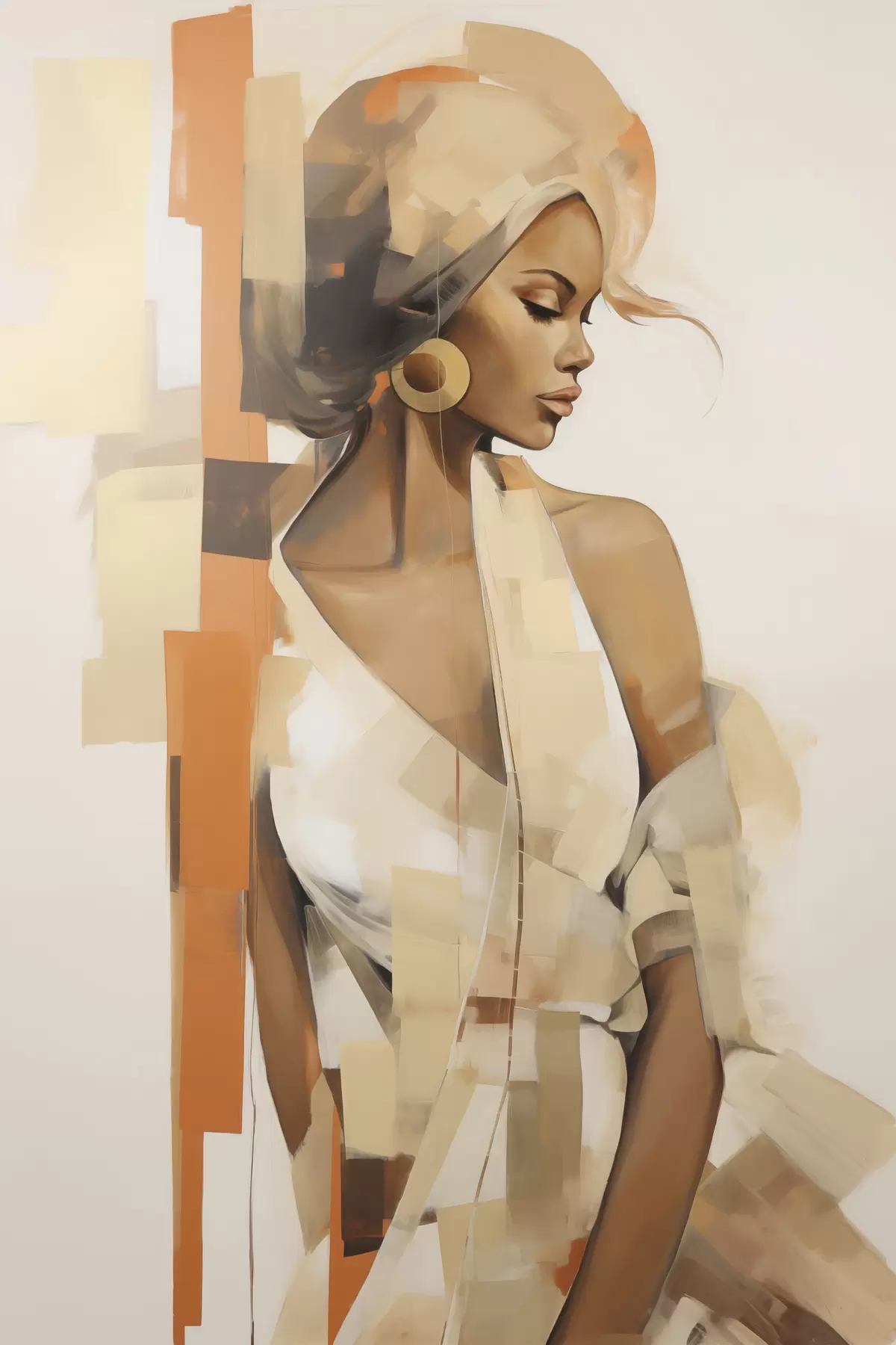 Obraz Abstrakcyjny portret kobiety z pomarańczowymi i beżowymi kształtami Nr s48735