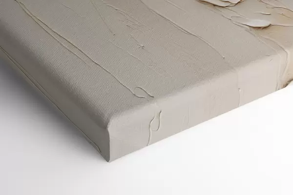 Drobny splot nici na tym płótnie przypomina powierzchnię profesjonalnych płócien artystycznych.