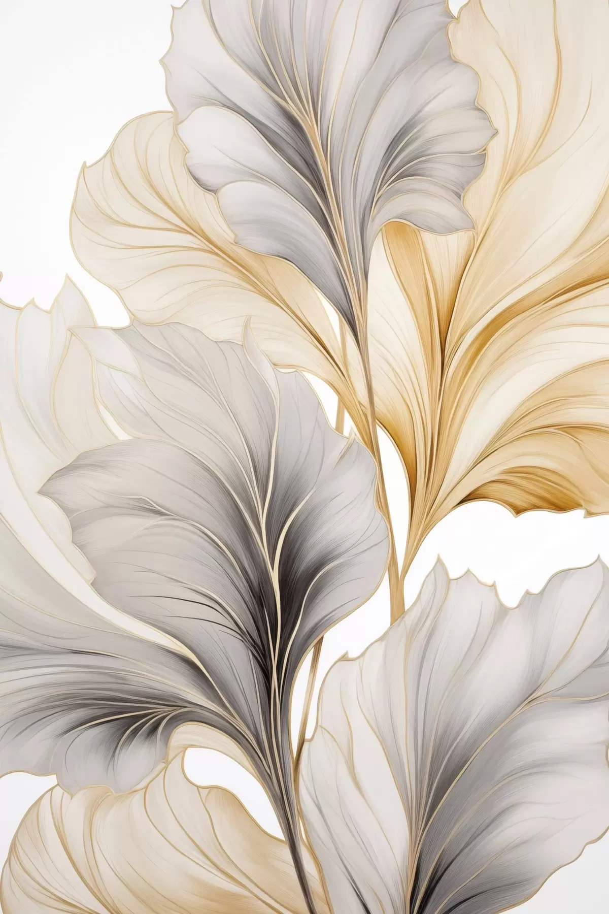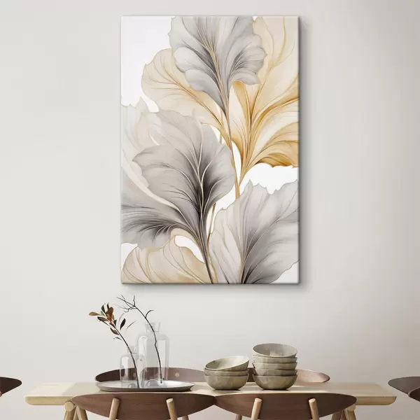 Obraz Duże, półprzezroczyste liście w odcieniach szarości i żółci Nr s48745