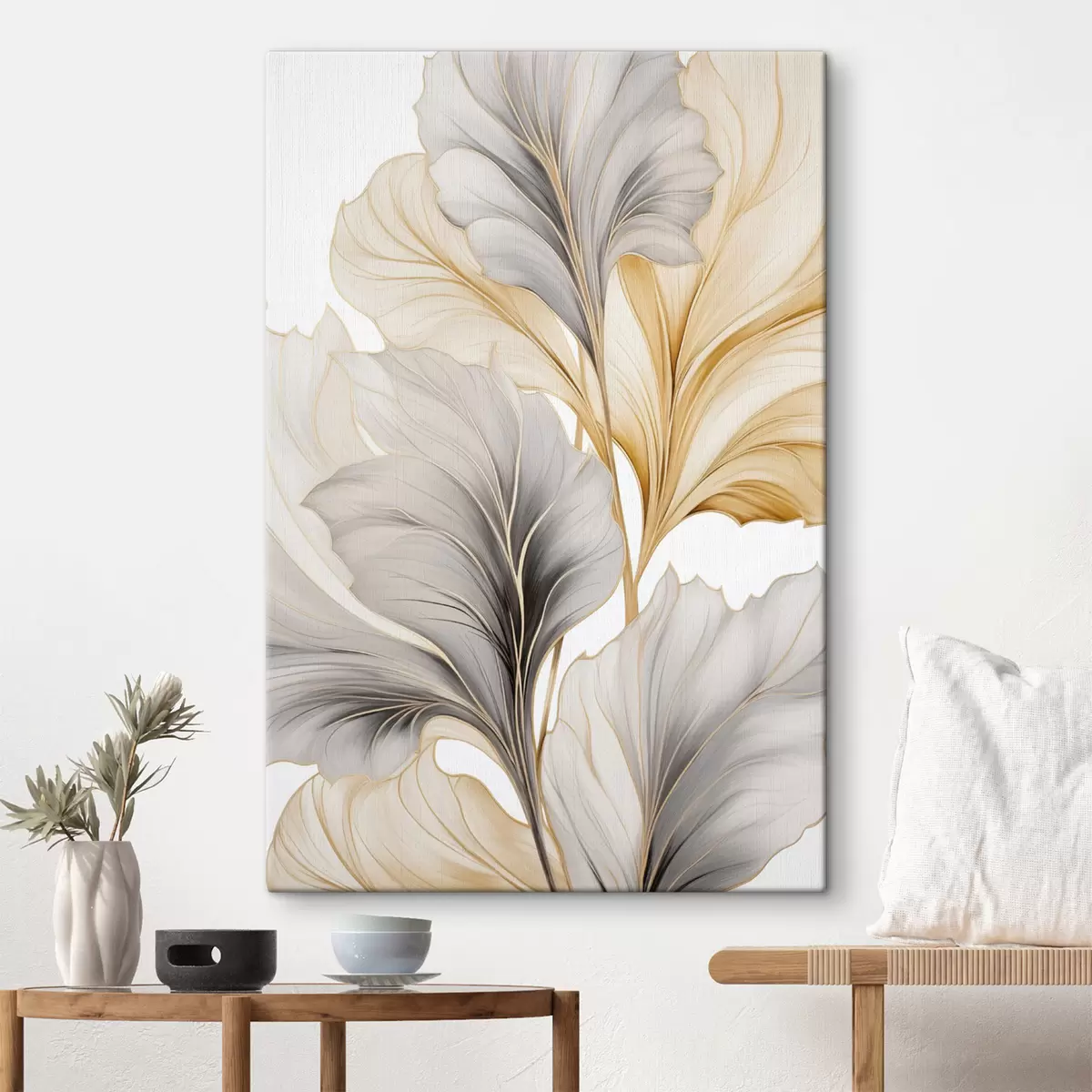Obraz Duże, półprzezroczyste liście w odcieniach szarości i żółci s48745