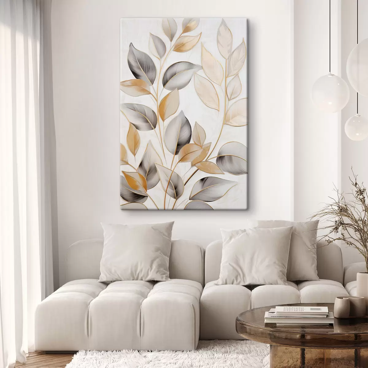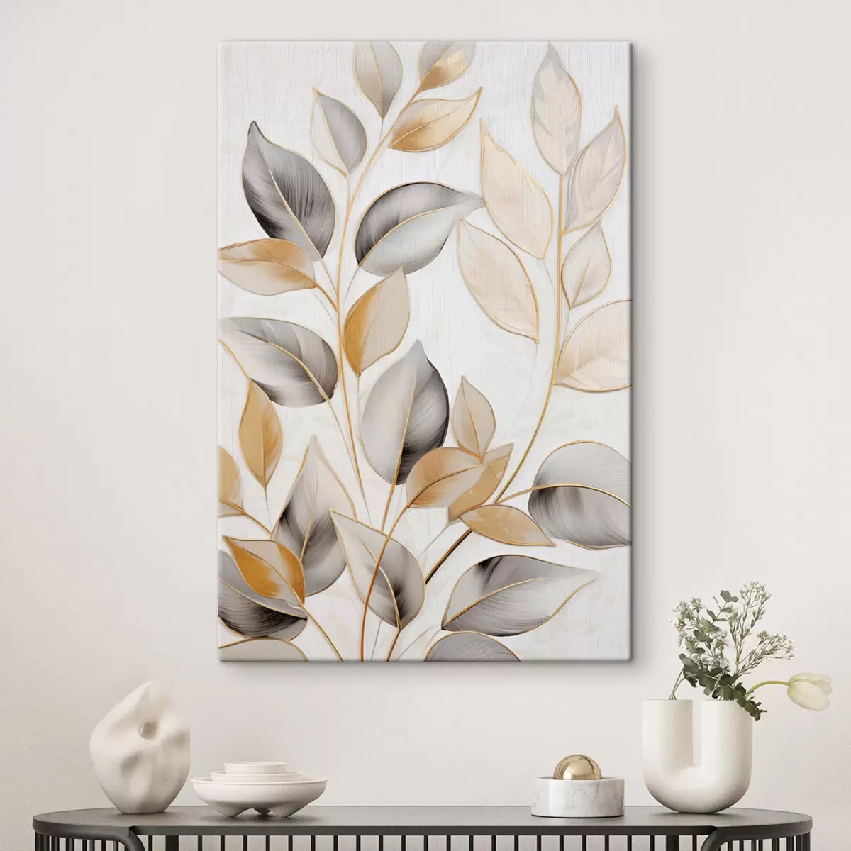 Obraz Duże, półprzezroczyste liście w odcieniach szarości i żółci s48746