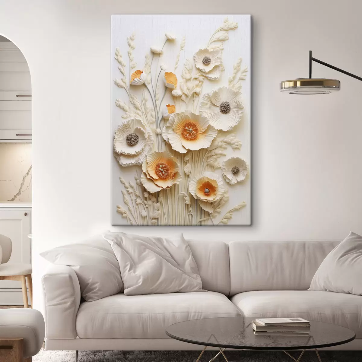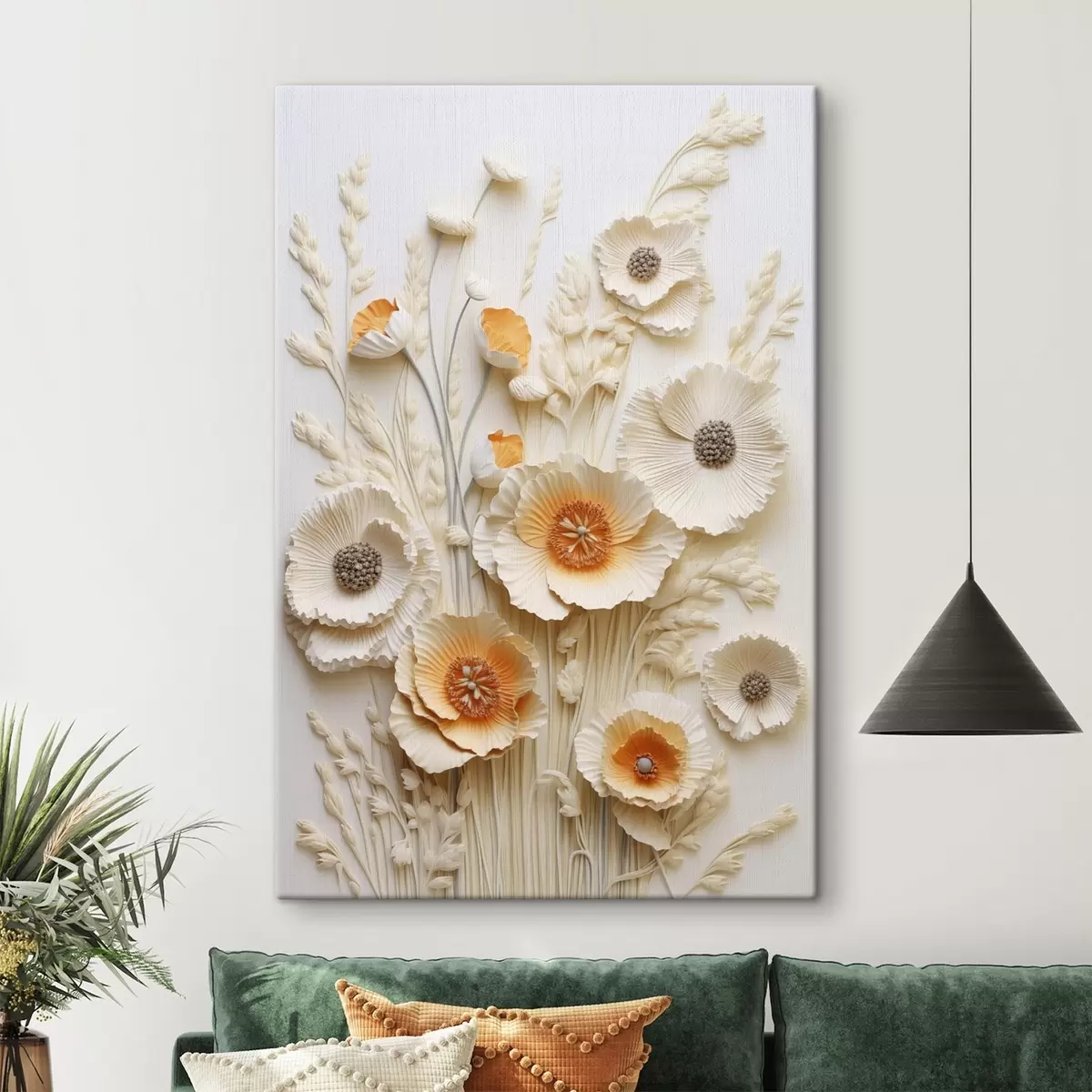 Obraz Bukiet kremowych i pomarańczowych maków z suszonymi łodygami pszenicy Nr s48747