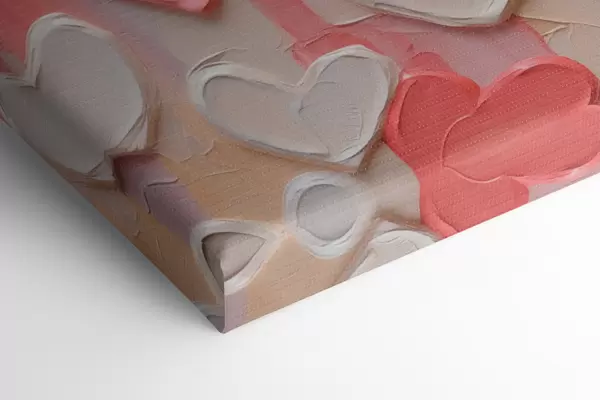 Obraz Serca w różnych odcieniach brzoskwiniowym i różowym, wykonane w stylistyce malowanej z efektem tekstury Nr s48751