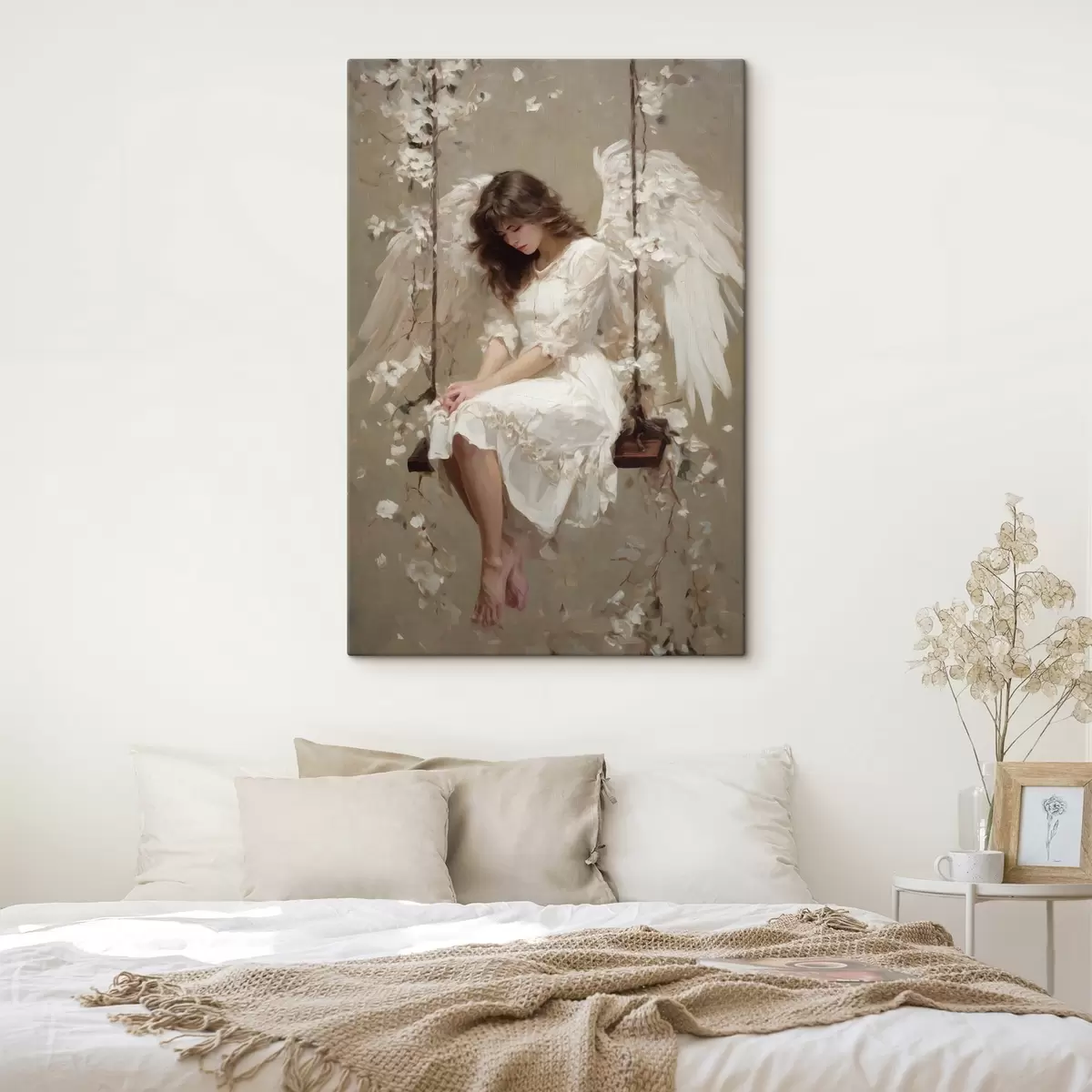 Obraz dziewczynka-aniołek na huśtawce, namalowana techniką olejną s48789