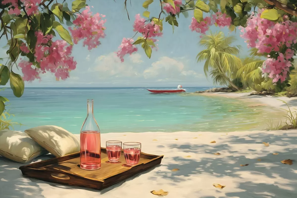 Obraz błękitna plaża i sangria Nr s48793