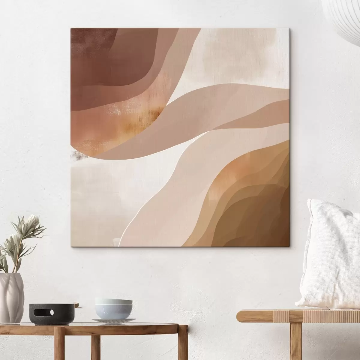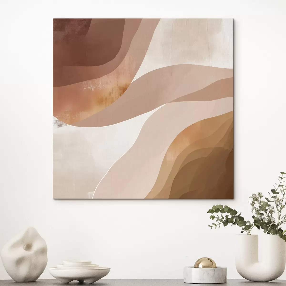 Obraz Abstrakcyjne, faliste kształty w kawowo-beżowej kolorystyce Nr s48836