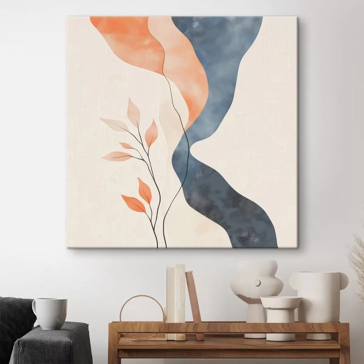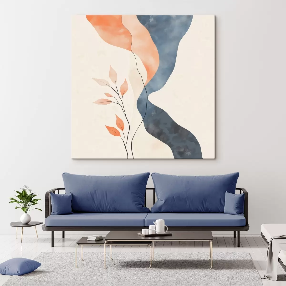 Obraz Kompozycja kwiatowa o płynnych liniach w niebiesko-pomarańczowej kolorystyce s48837