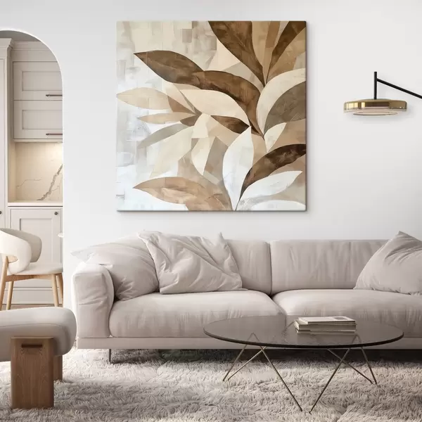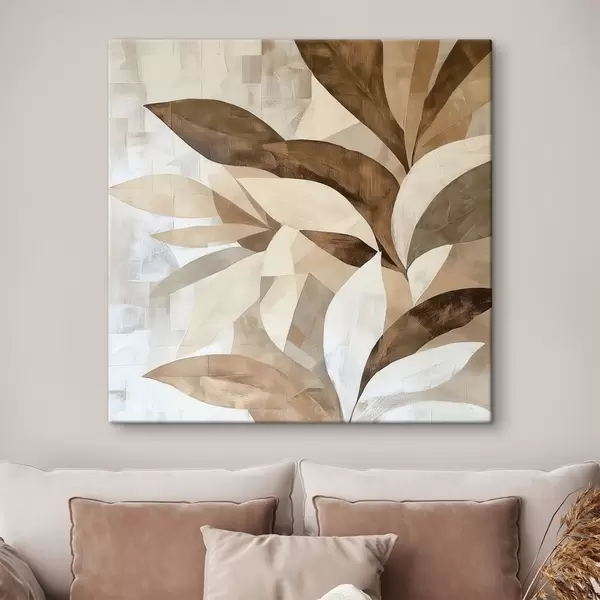Obraz Abstrakcyjna kompozycja kwiatowa z dużymi liśćmi w odcieniach brązu i beżu Nr s48848