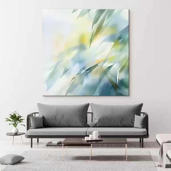 Obraz Rozmyte naturalne kształty i delikatne odcienie turkusu w artystycznym stylu plakatu Nr s48850