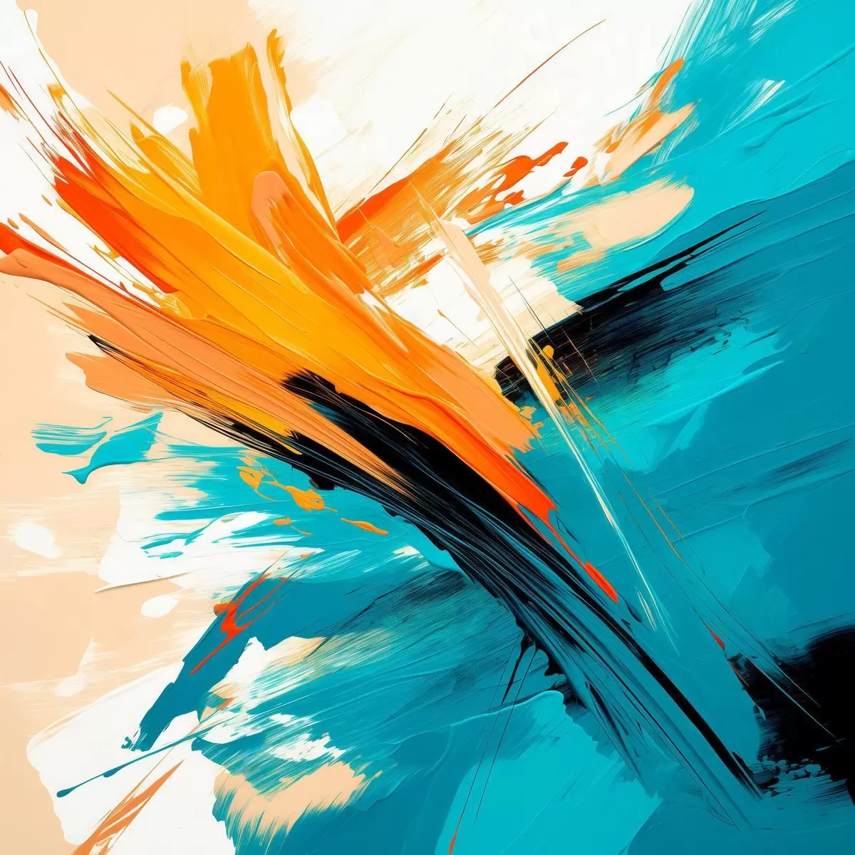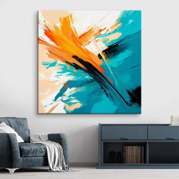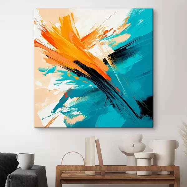 Obraz Żywe kompozycje w turkusowo-terakotowej kolorystyce, utrzymane w nowoczesnym stylu malarskim s48855