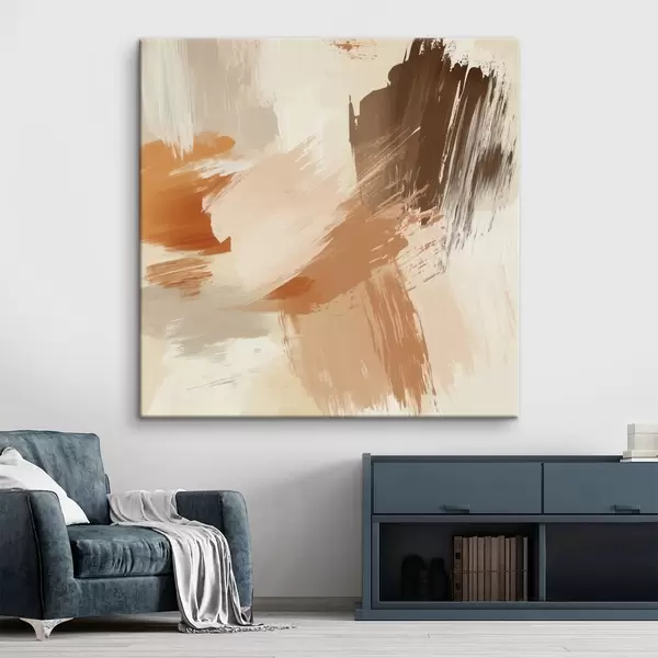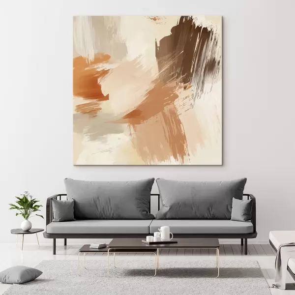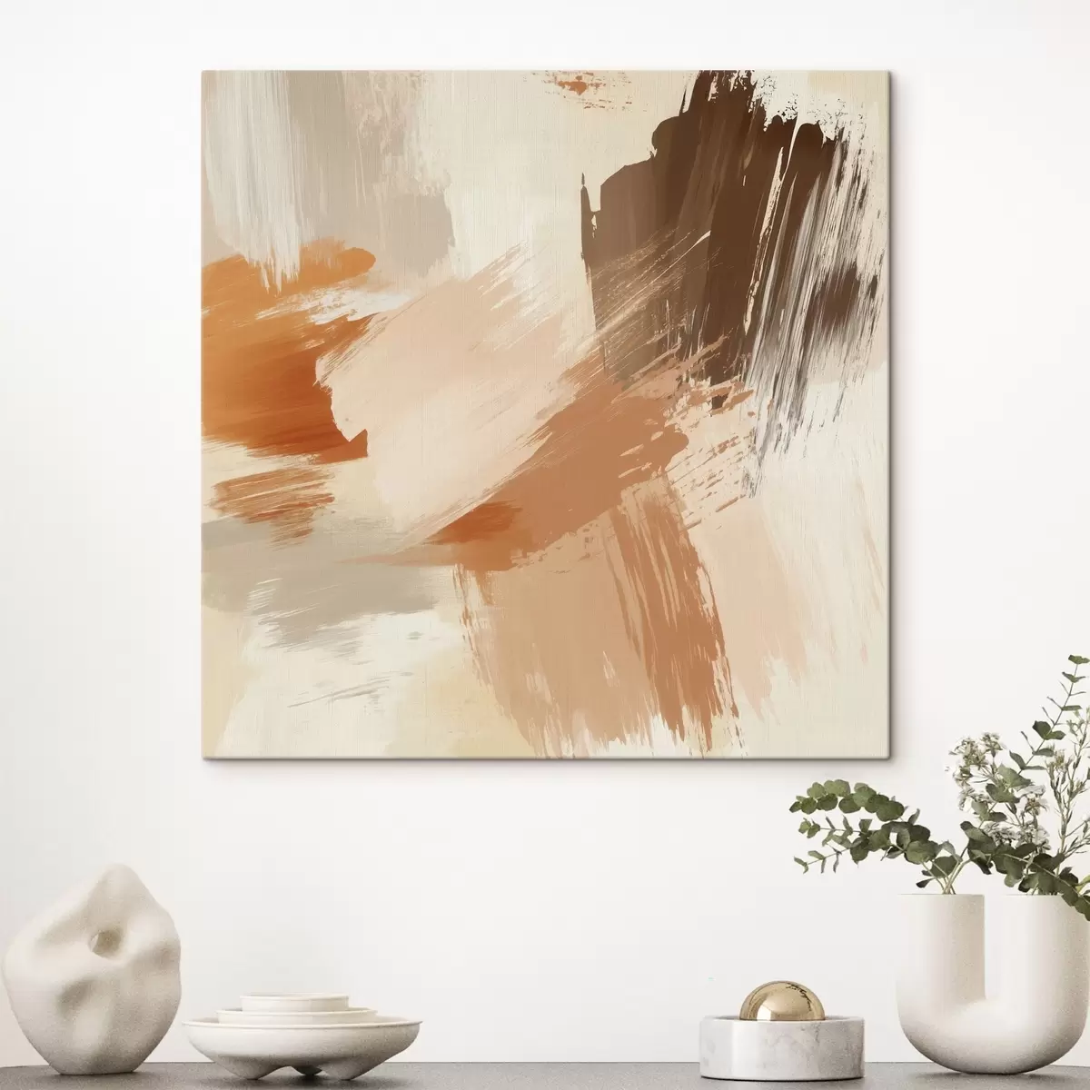 Obraz Naśladowanie abstrakcyjnych pociągnięć pędzla w odcieniach piaskowych i brązowych s48857