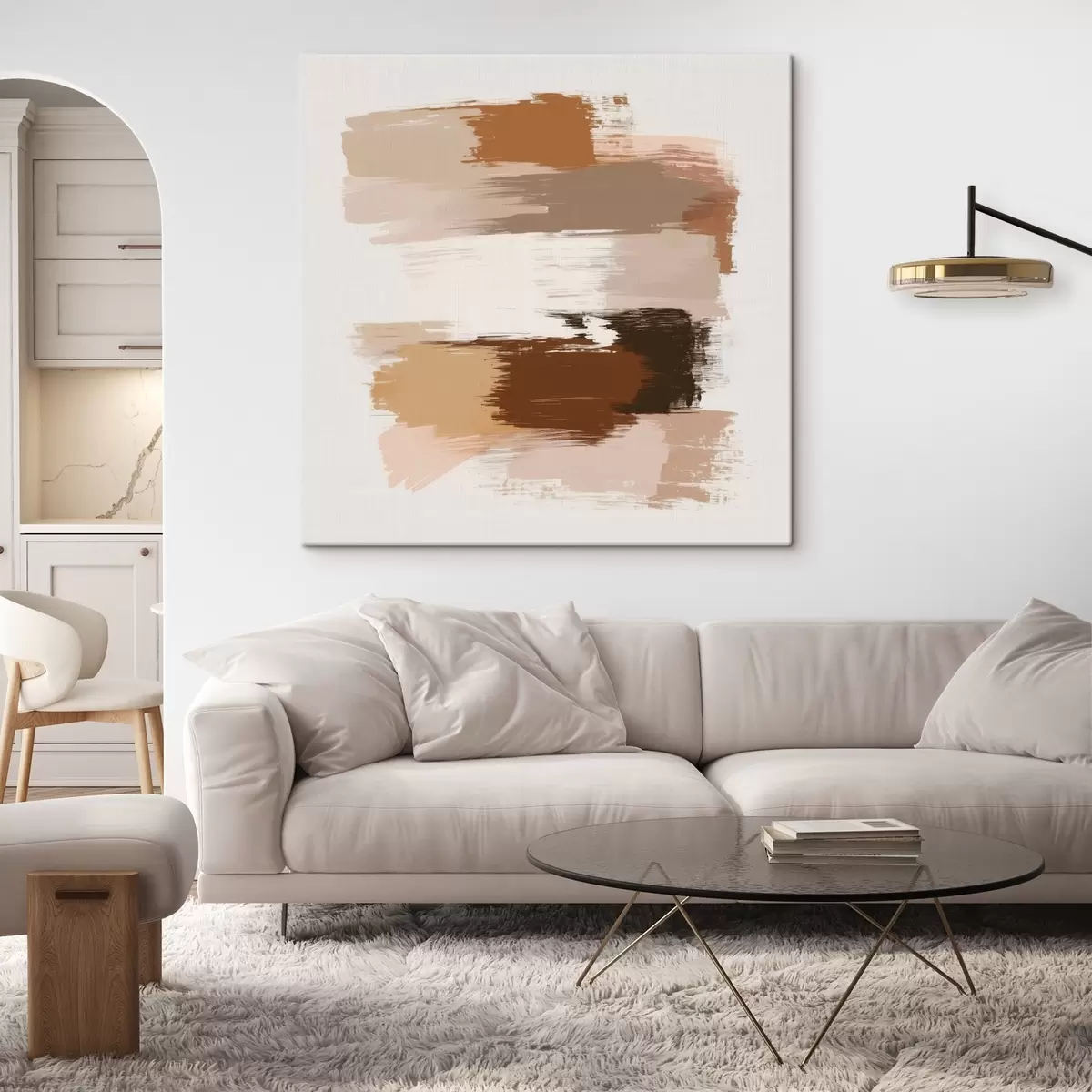 Obraz Minimalistyczna kompozycja z poziomymi pociągnięciami pędzla w odcieniach kawy i terakoty Nr s48858