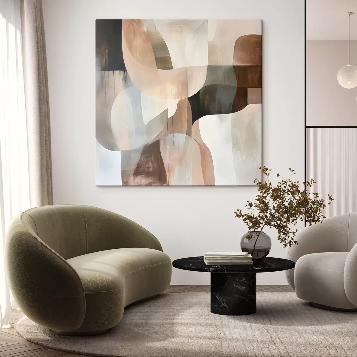 Obraz Kompozycja abstrakcyjna w ciepłej palecie beżowo-koralowej Nr s48859