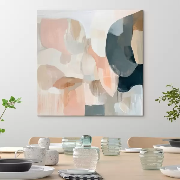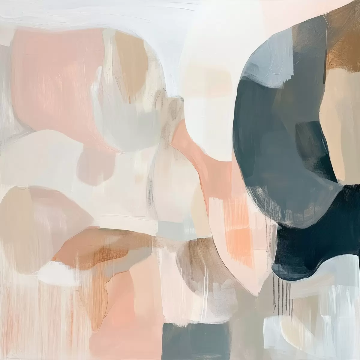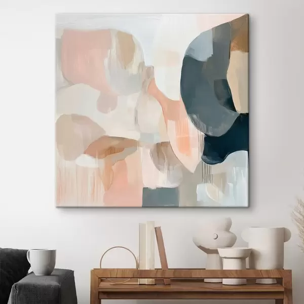 Obraz Kompozycja abstrakcyjna utrzymana w pastelowych i ciemnoniebieskich odcieniach, wykonana w nowoczesnym stylu malarskim s48860