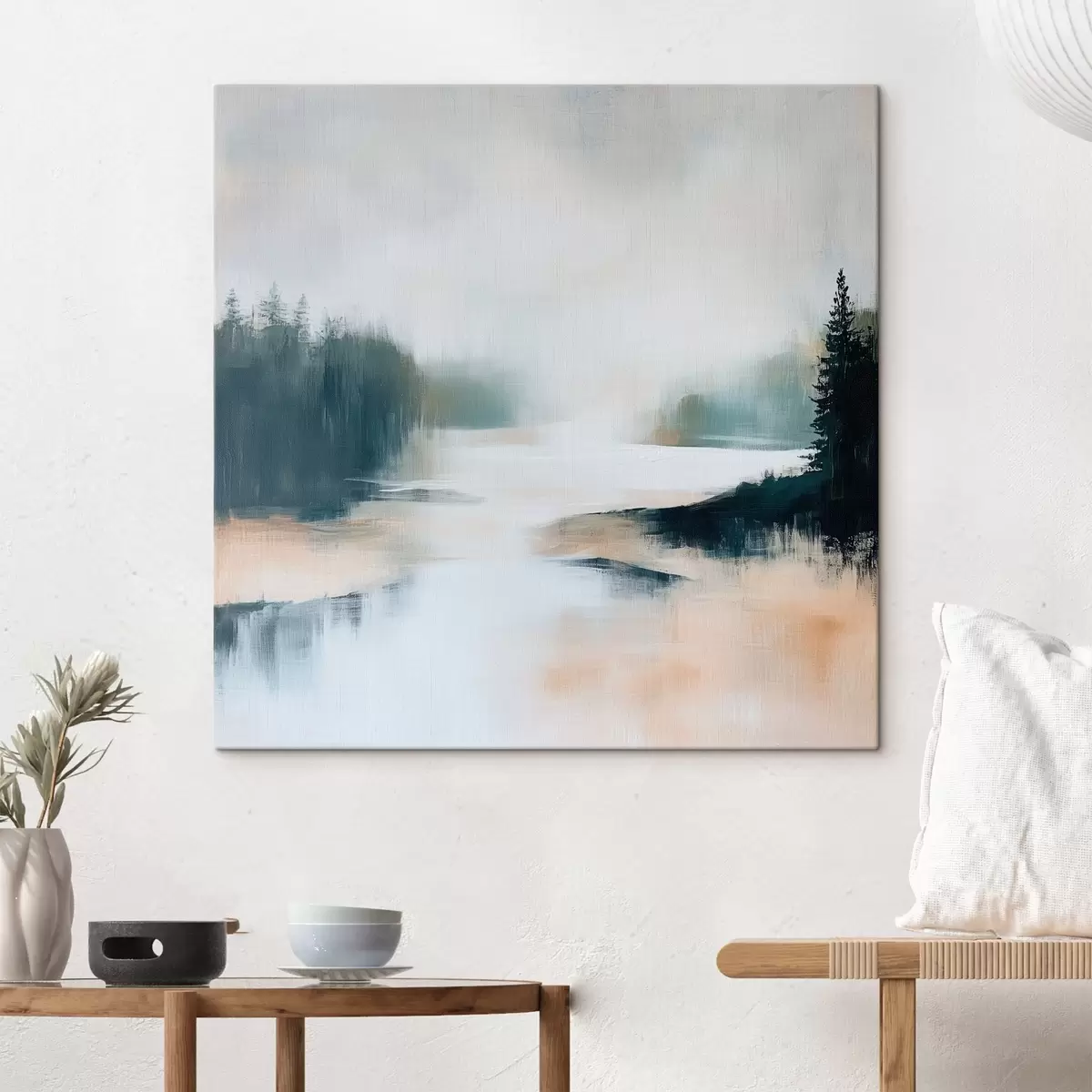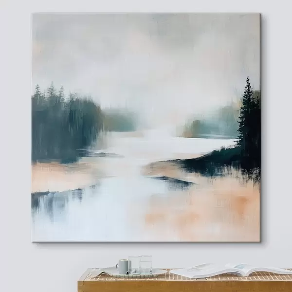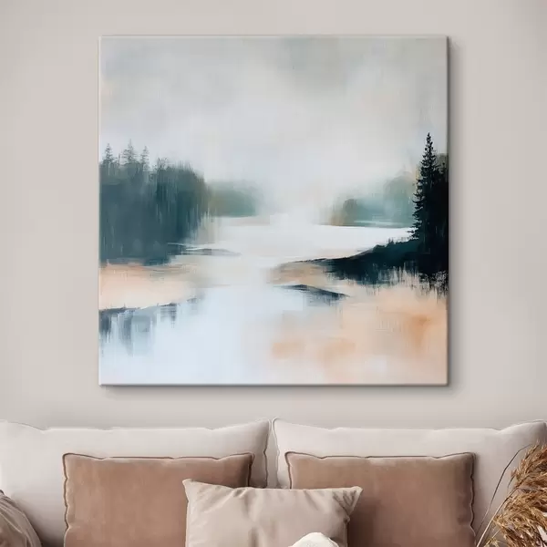 Obraz Abstrakcyjny pejzaż leśny utrzymany w odcieniach różu i błękitu, wykonany w nowoczesnym stylu malarskim Nr s48862