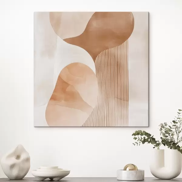 Obraz Sztuka dekoracyjna w ciepłej beżowo-koralowej kolorystyce z efektem akwareli Nr s48870