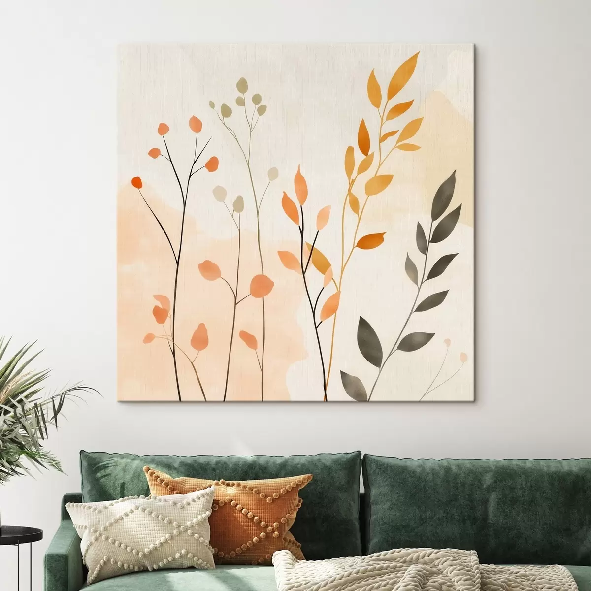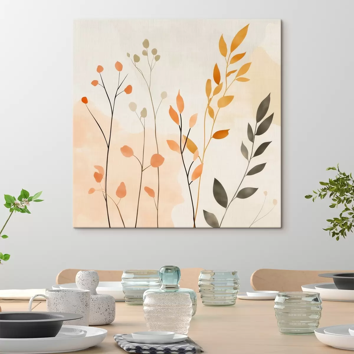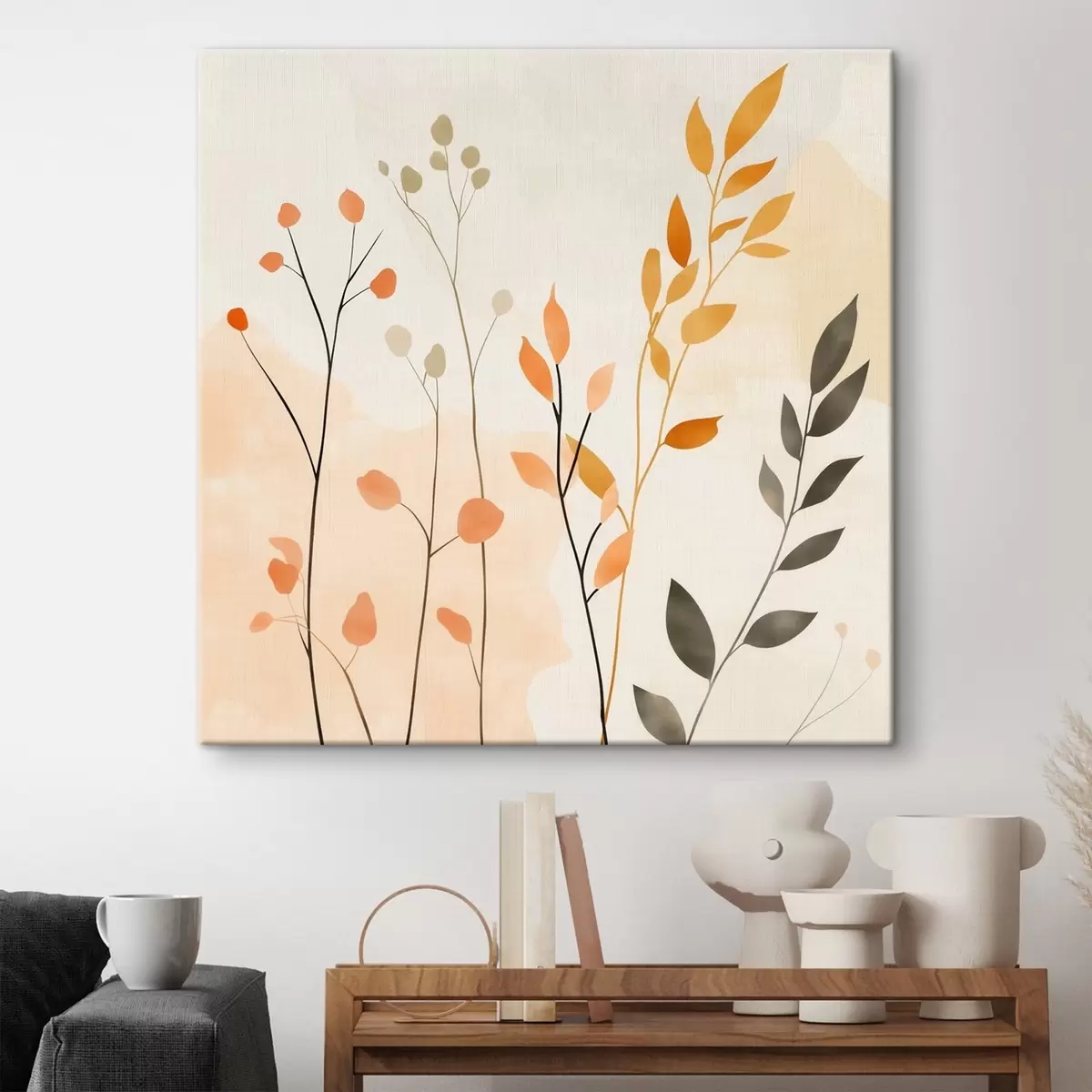 Obraz Kompozycja w pastelowych barwach z delikatną roślinnością, utrzymana w nowoczesnym stylu malarskim s48873