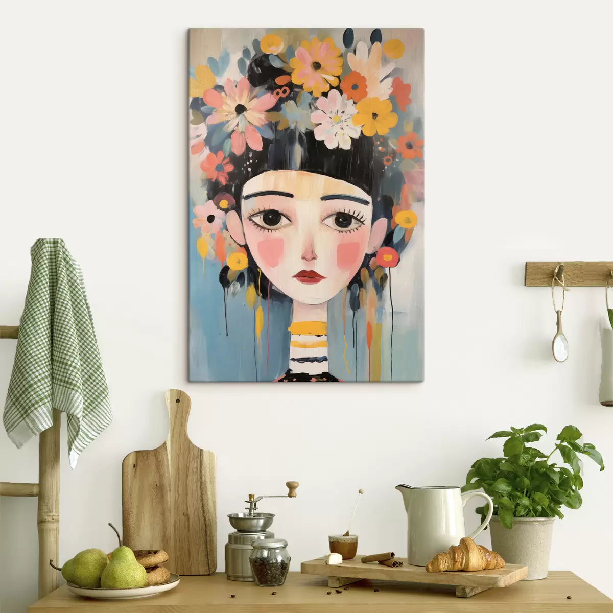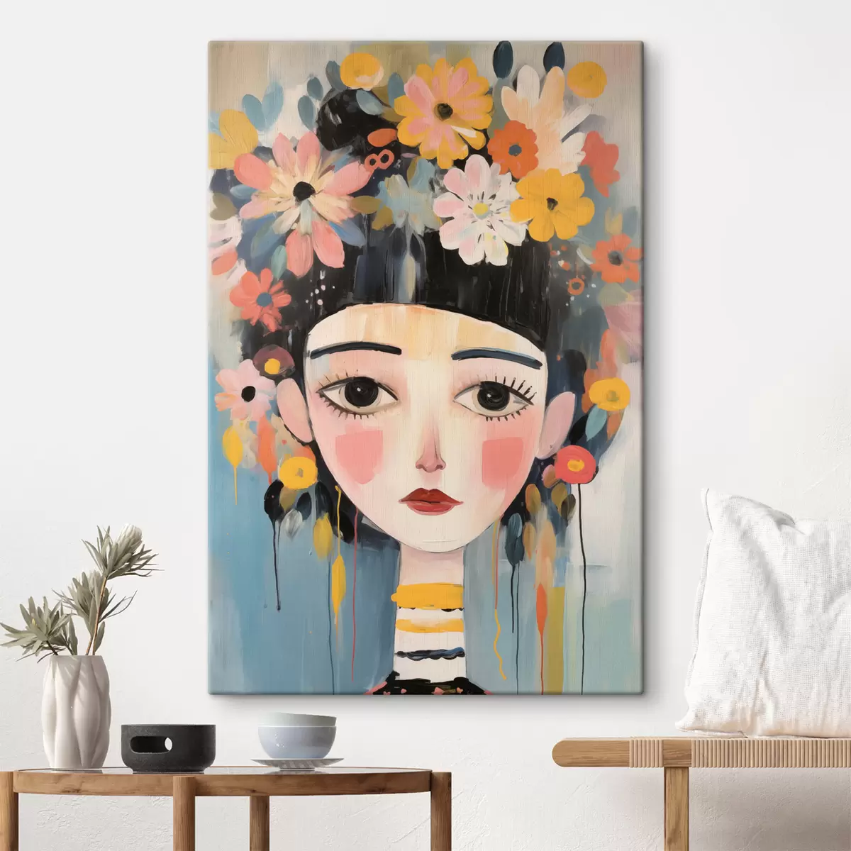 Obraz Portret kobiety z kwiatami we włosach, styl abstrakcyjny Nr s48935