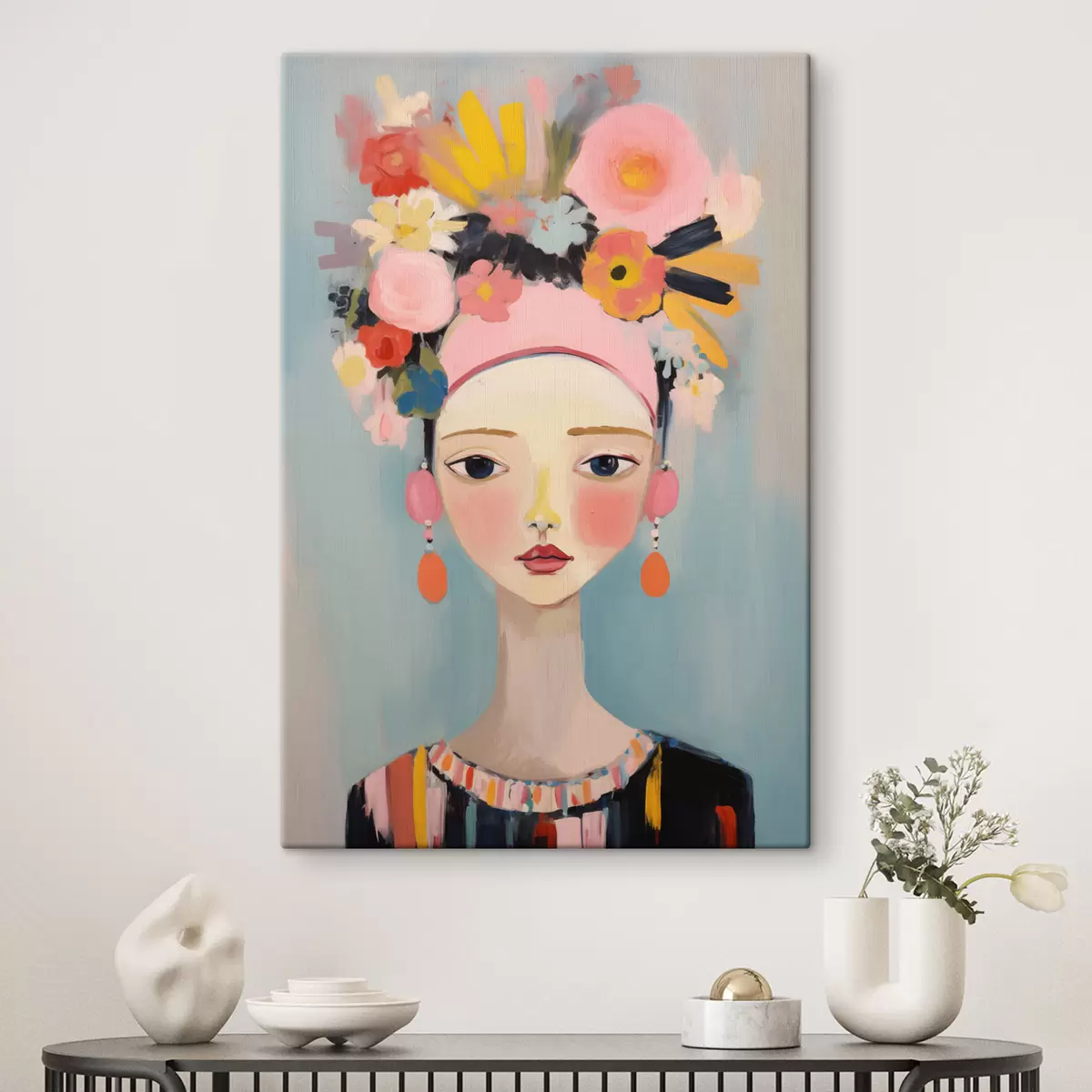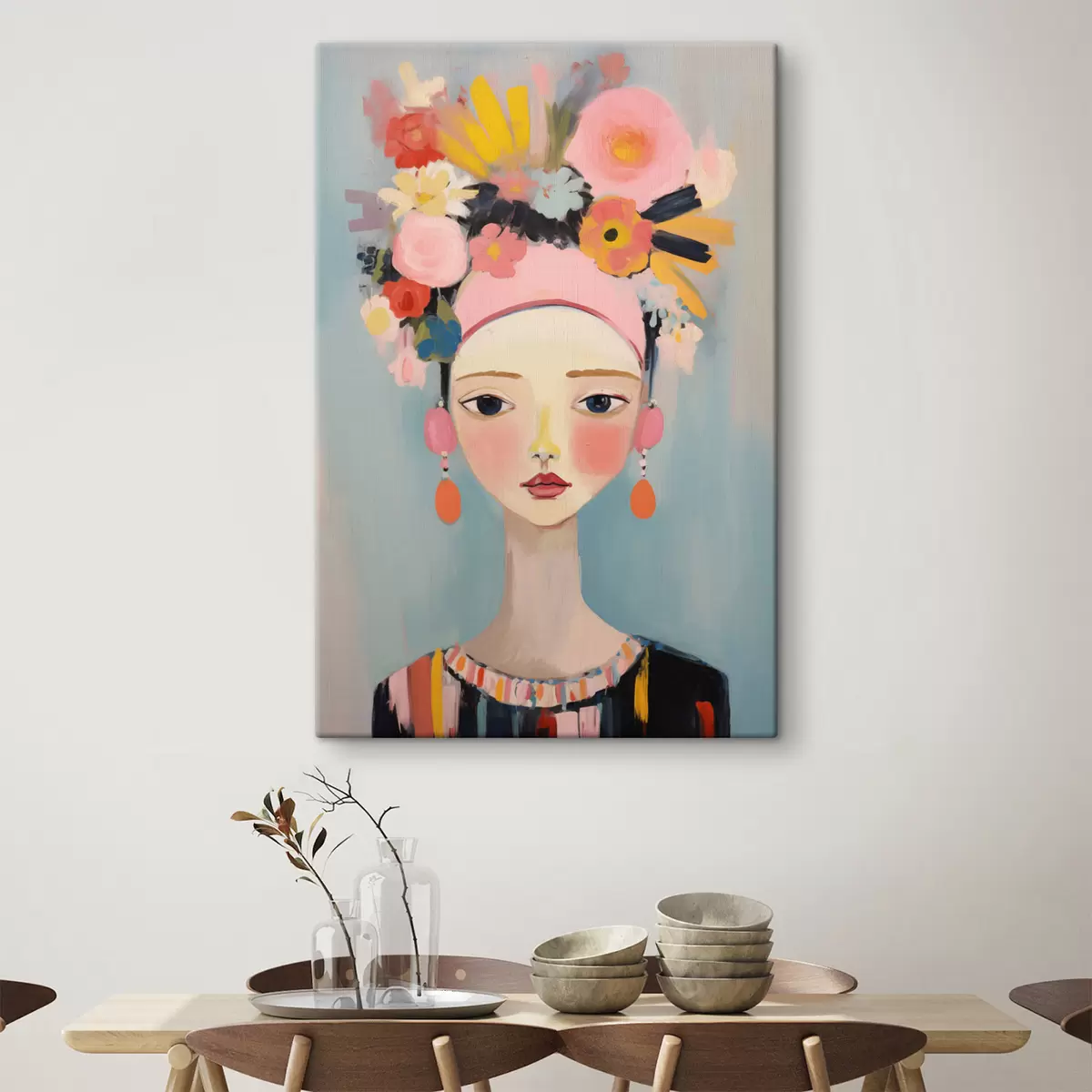 Obraz Portret kobiety z kwiatami we włosach, styl abstrakcyjny Nr s48936