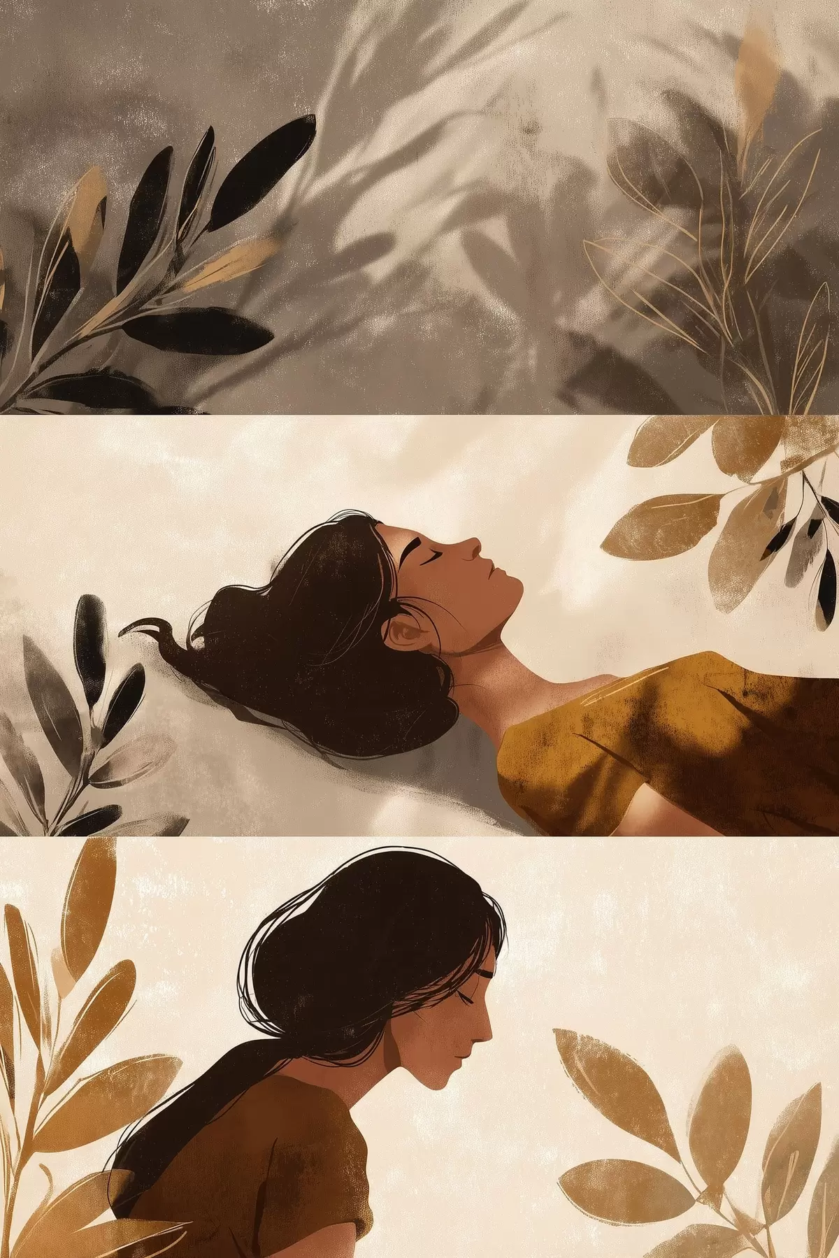 Obraz Tryptyk „Kobieta z liśćmi” Nr s49018