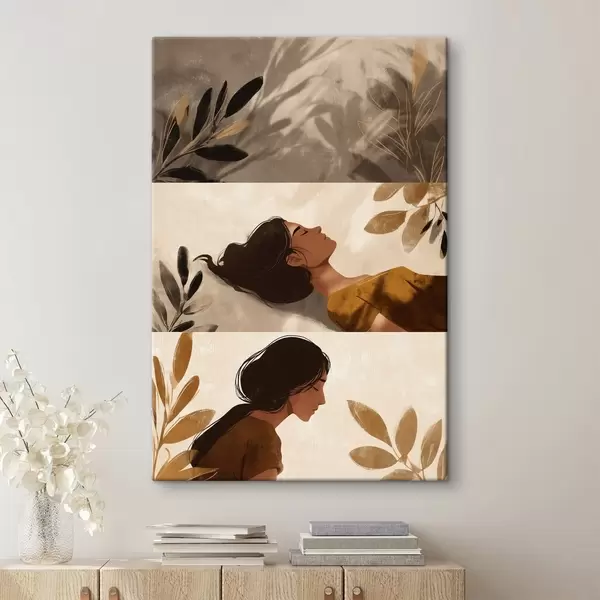 Obraz Tryptyk „Kobieta z liśćmi” s49018