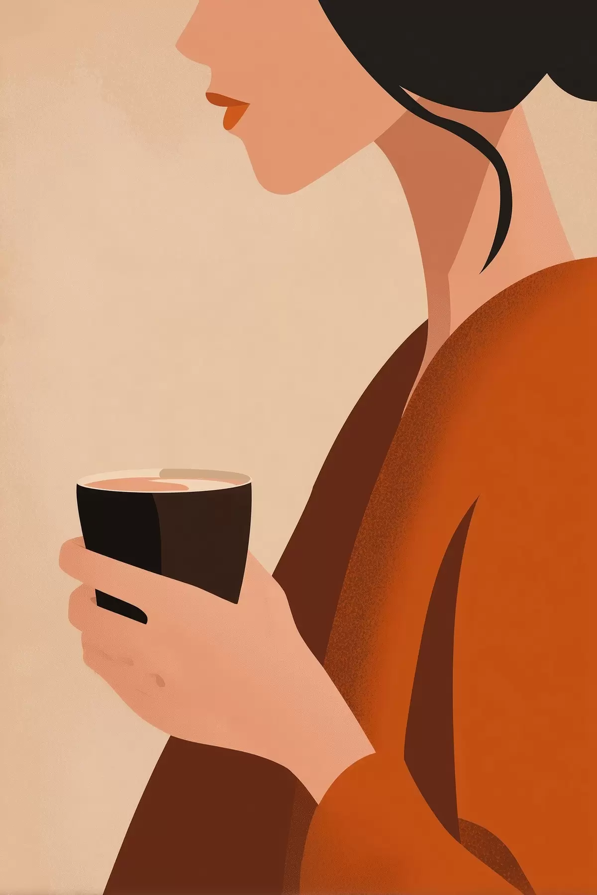Obraz Kobieta z filiżanką – styl minimalistyczny Nr s49019