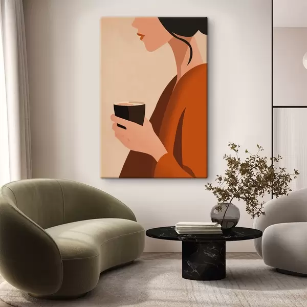 Obraz Kobieta z filiżanką – styl minimalistyczny s49019