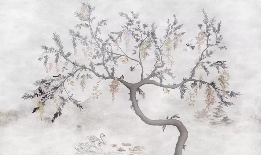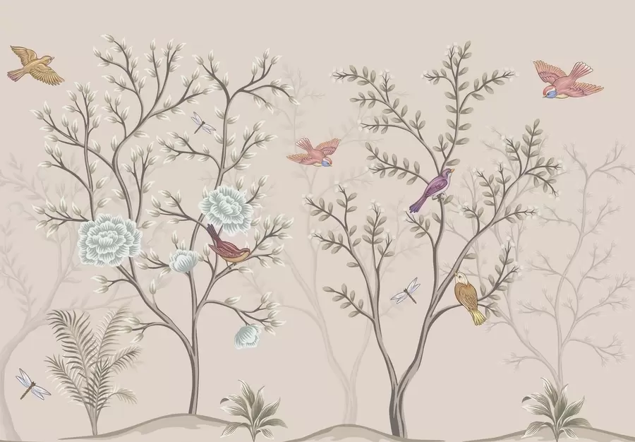 Chinoiserie Rośliny w stylu chińskim i pawie