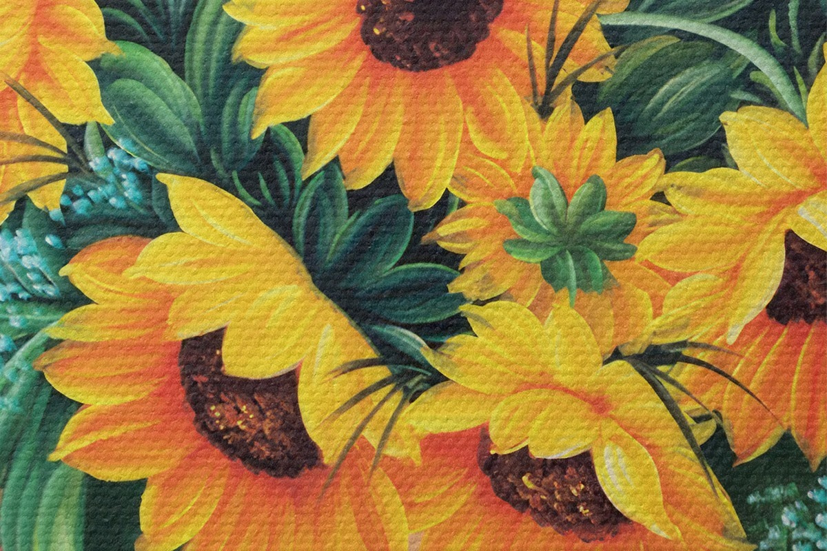 Okrągły obraz Słoneczniki w wazonie Nr r00860