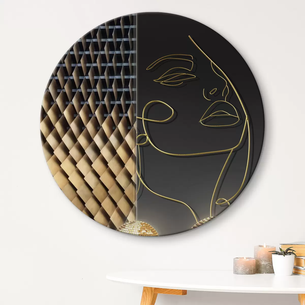Okrągły obraz Minimalistyczny portret i kula dyskotekowa Nr r02186