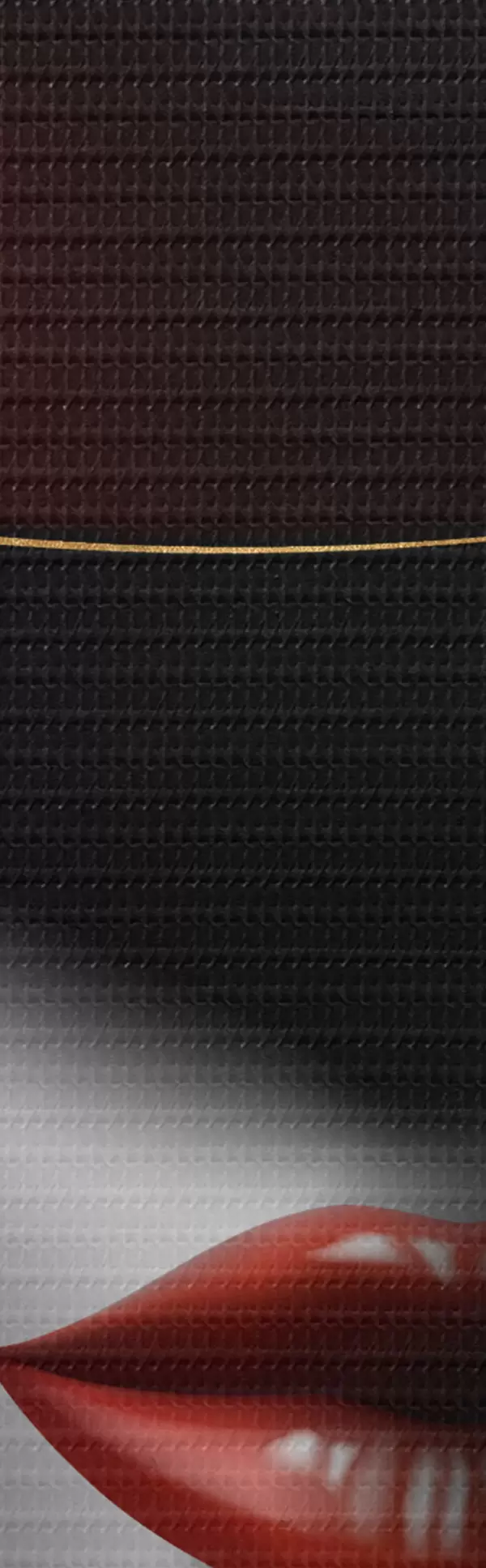 Okrągły obraz Wargi, fotografia z lampą błyskową i kapelusz Nr r03483