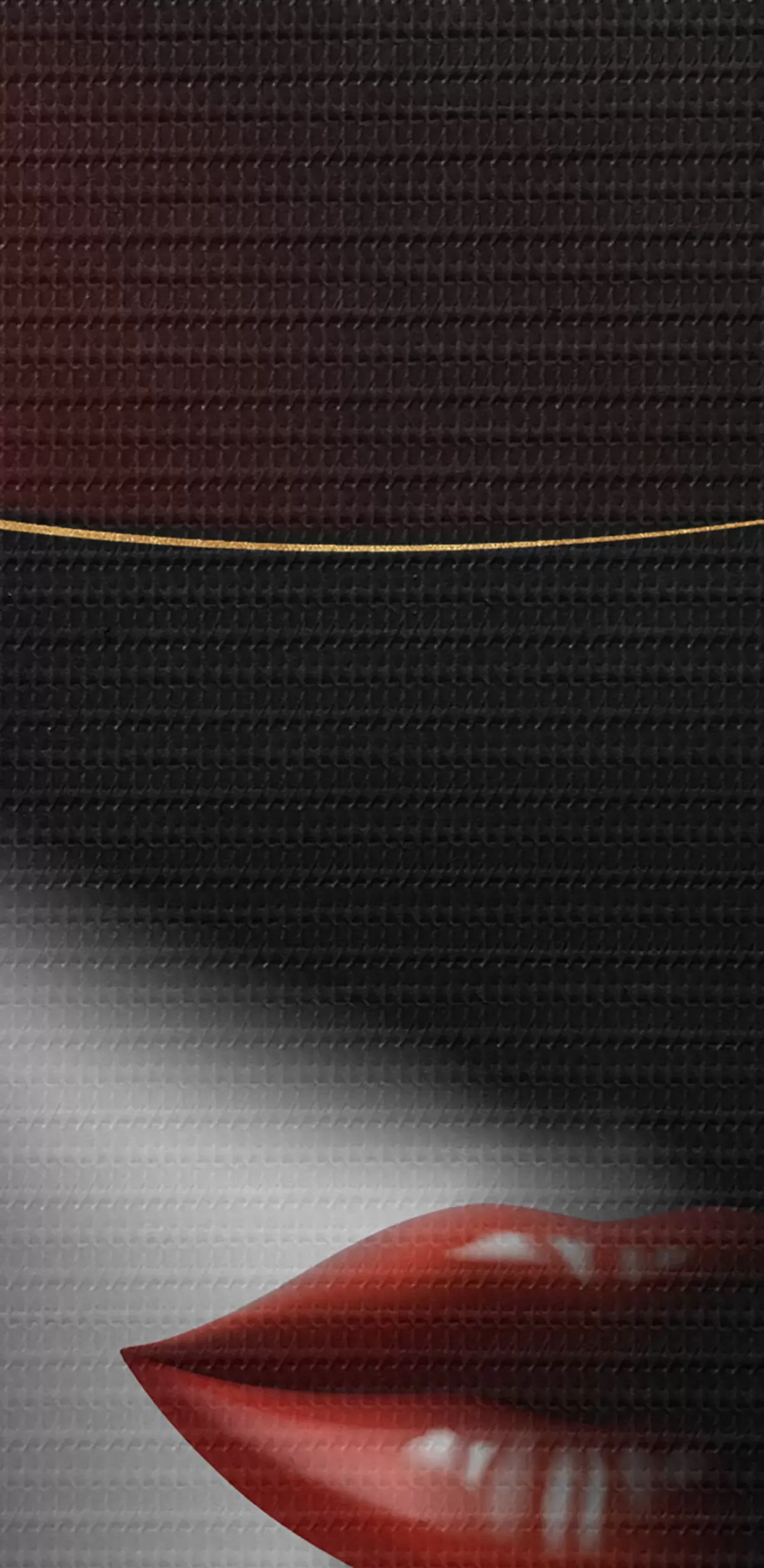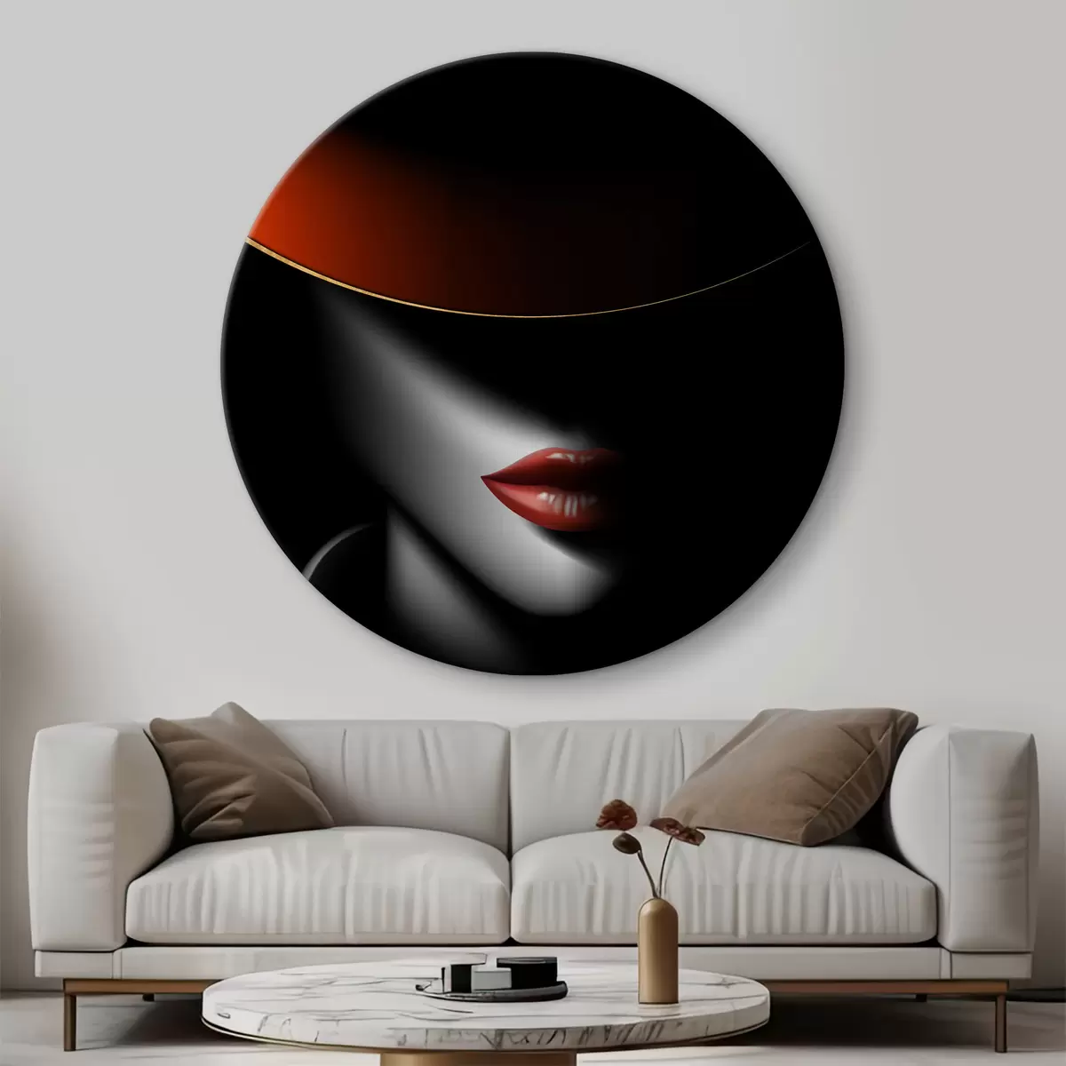 Okrągły obraz Wargi, fotografia z lampą błyskową i kapelusz Nr r03483
