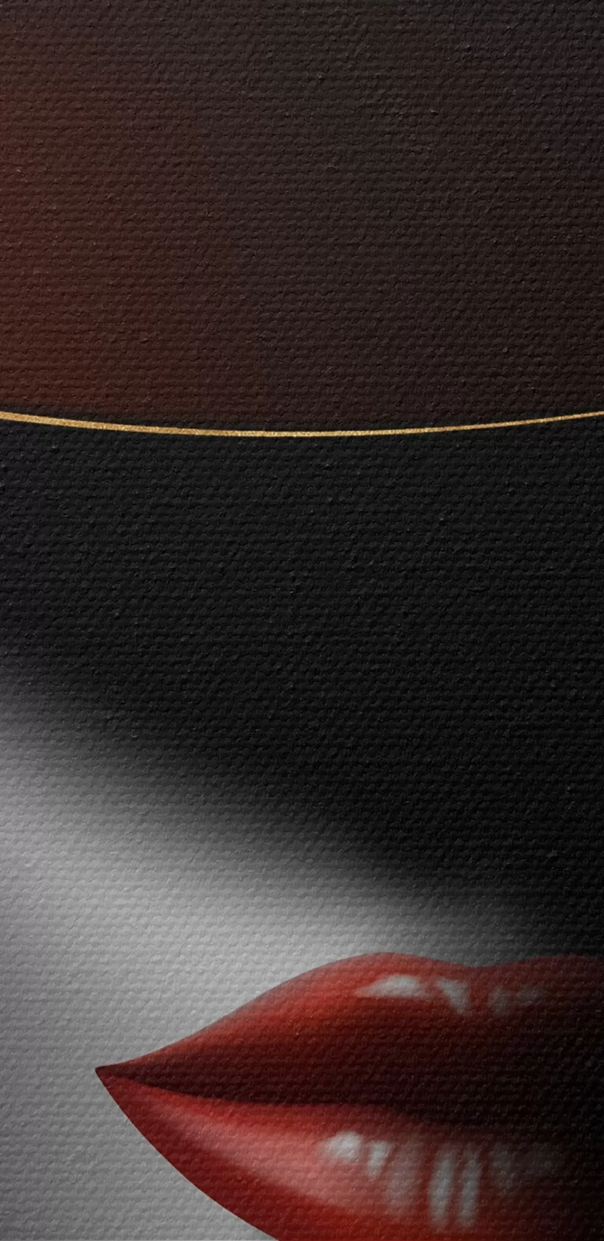 Okrągłe obrazy Wargi, fotografia z lampą błyskową i kapelusz r03483