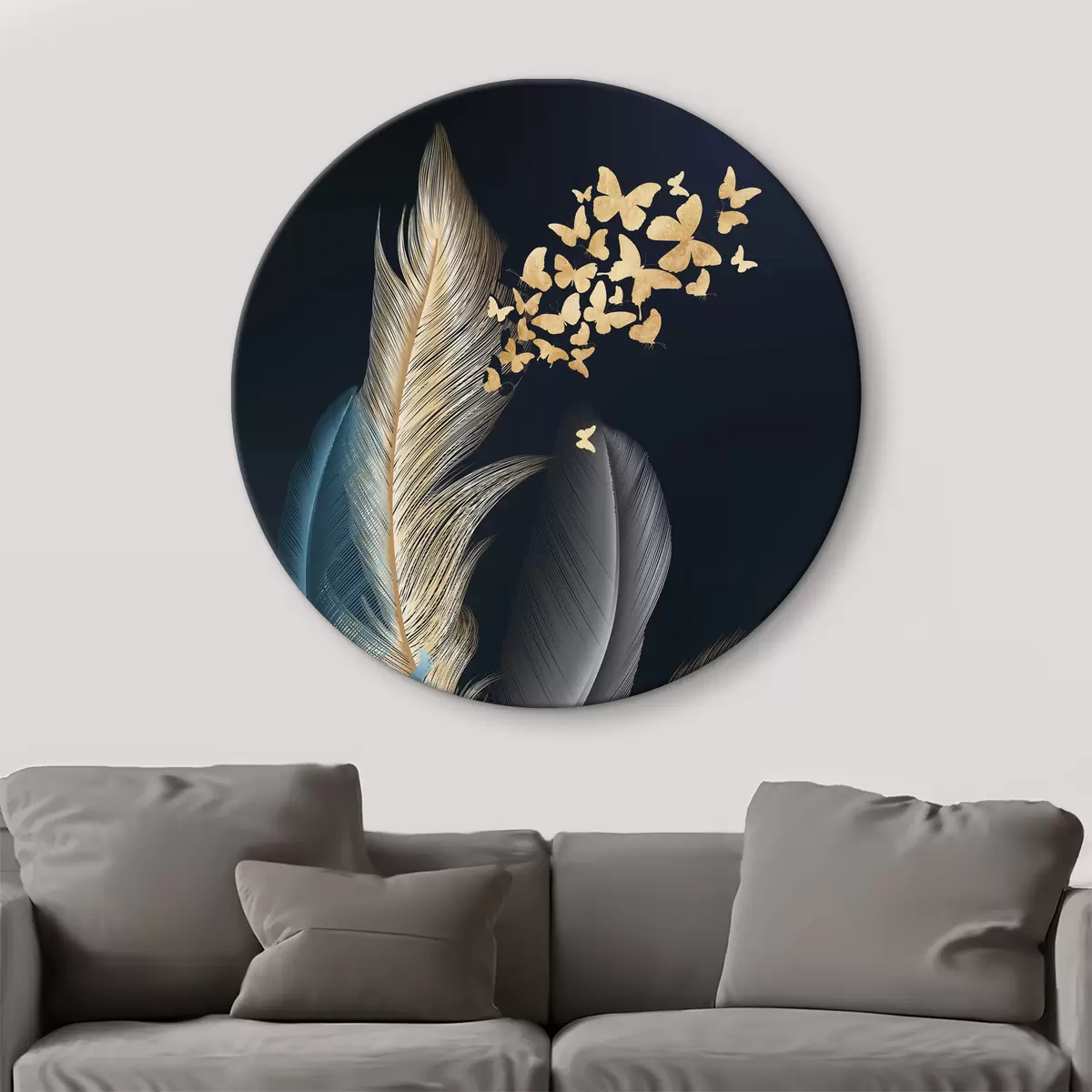 Okrągłe obrazy Pióra i motyle r03899