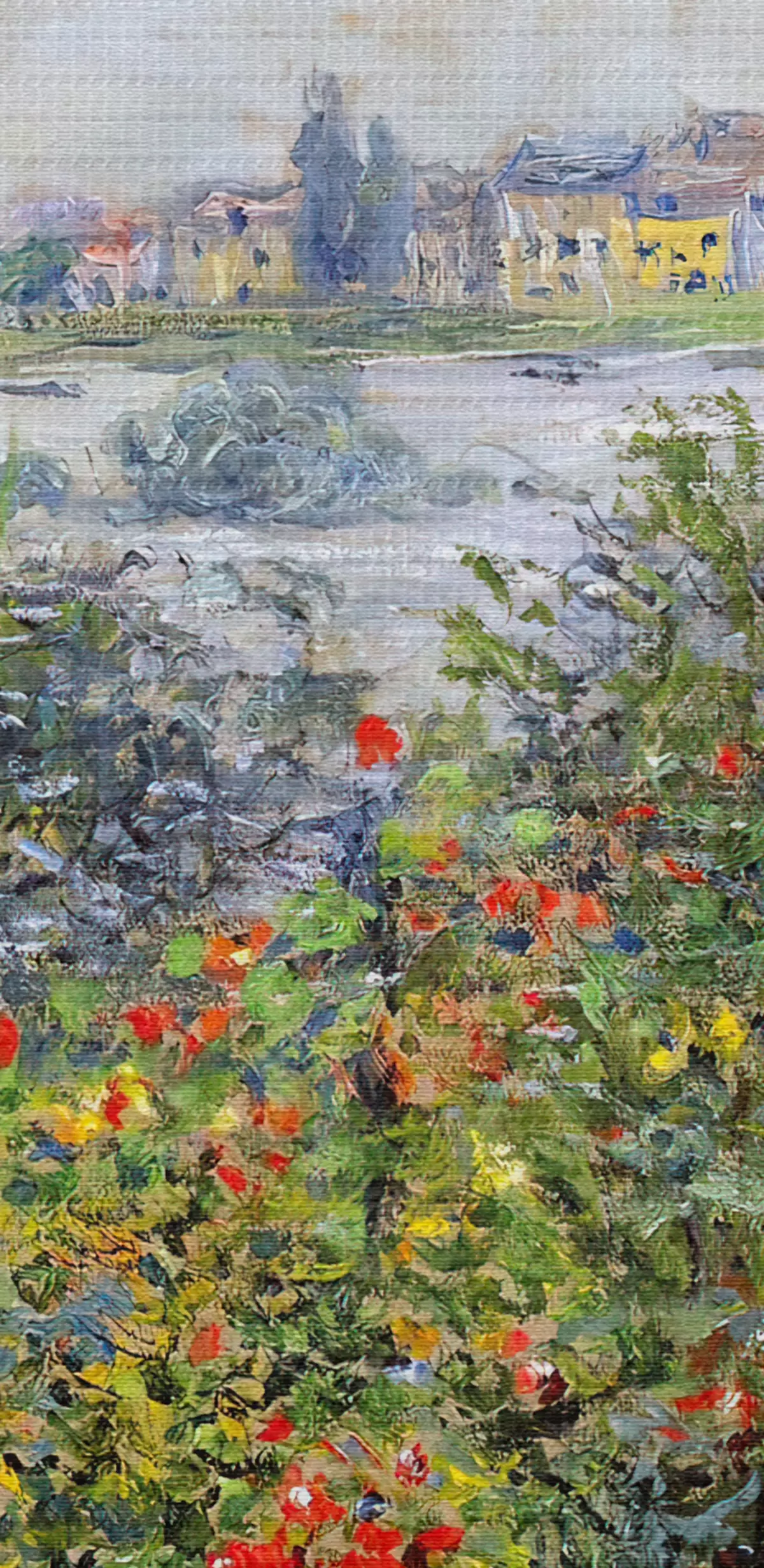 Drobny splot nici na tym płótnie przypomina powierzchnię profesjonalnych płócien artystycznych.