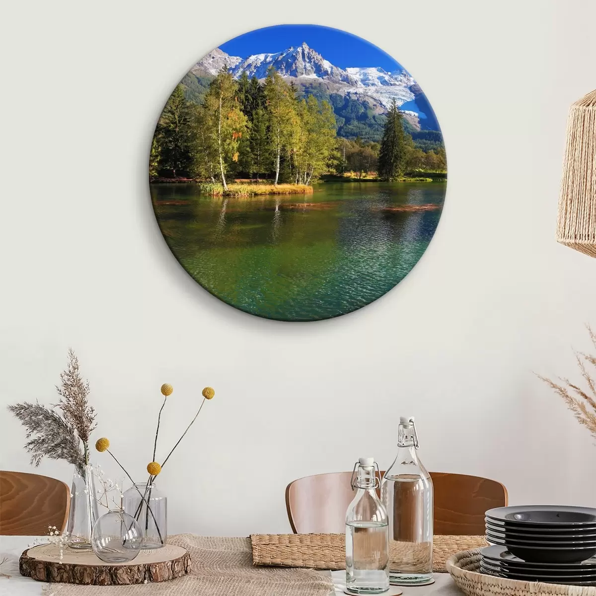 Okrągły obraz Woda, niebo i góry Nr r08443
