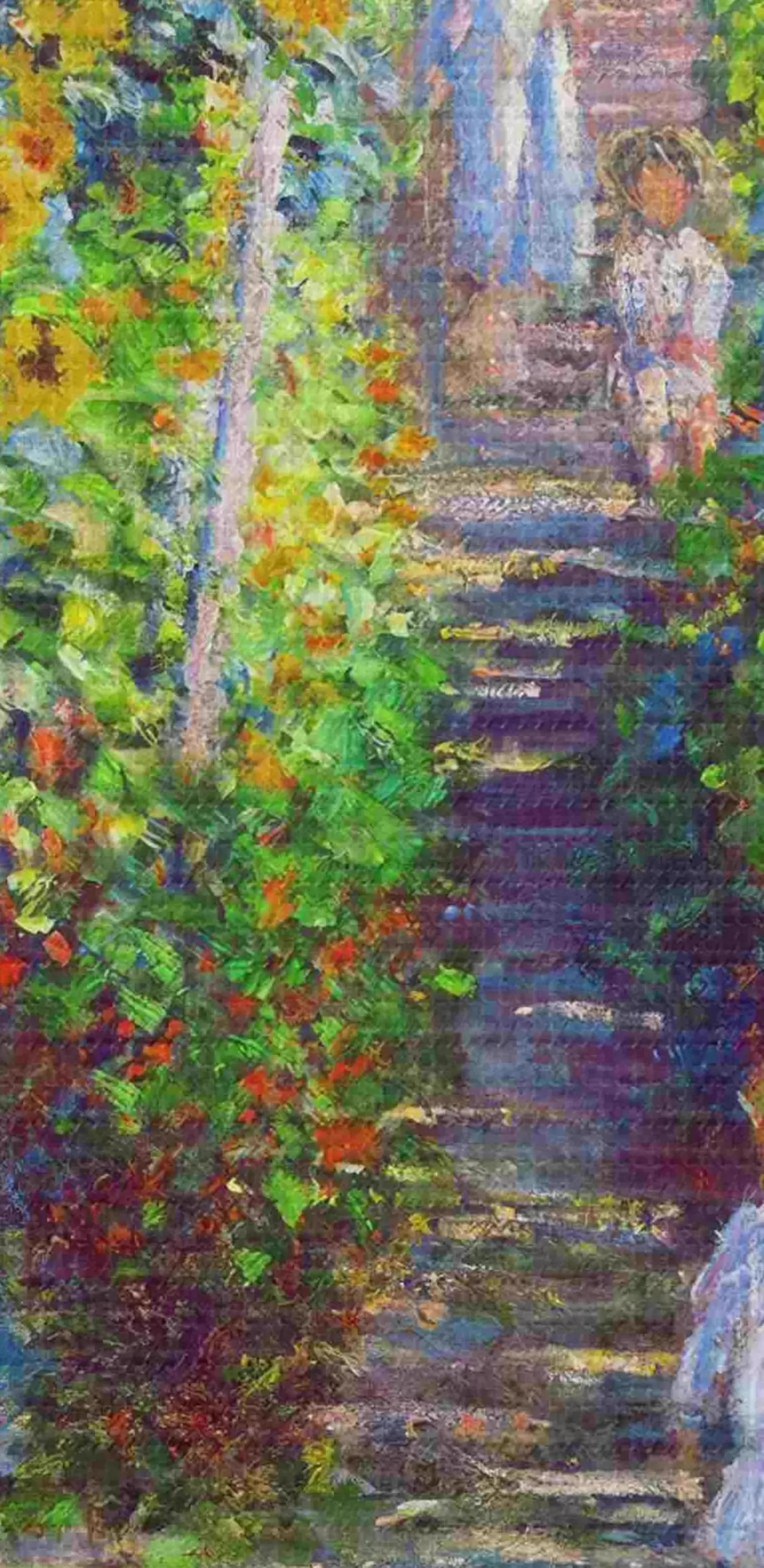 Obraz można delikatnie przetrzeć suchą, miękką szmatką lub gąbką; nie zaleca się używania mokrych produktów. Użycie wilgotnej gąbki jest dozwolone tylko wtedy, gdy obraz został polakierowany.