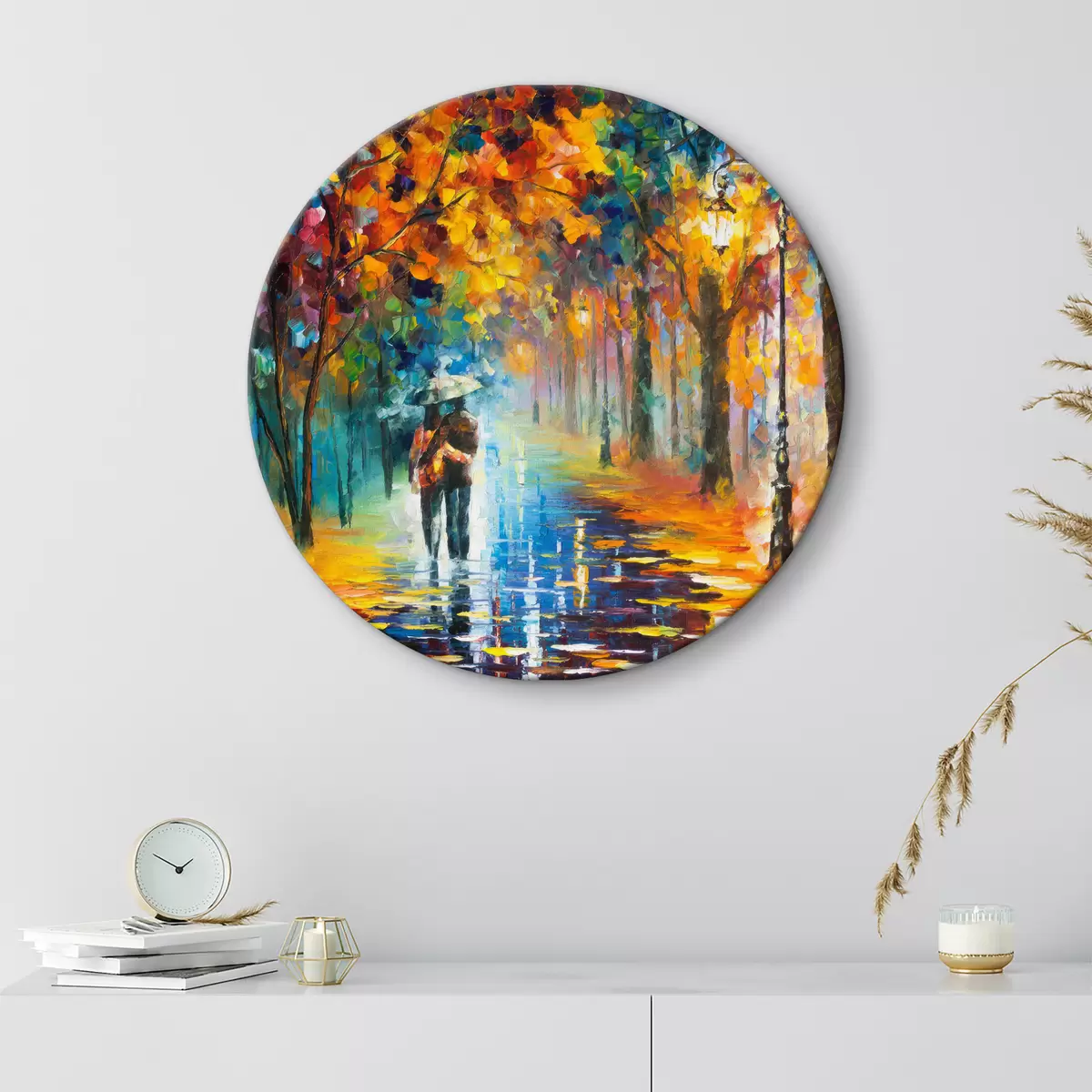 Okrągły obraz Para pod parasolem, jesień Nr r15186