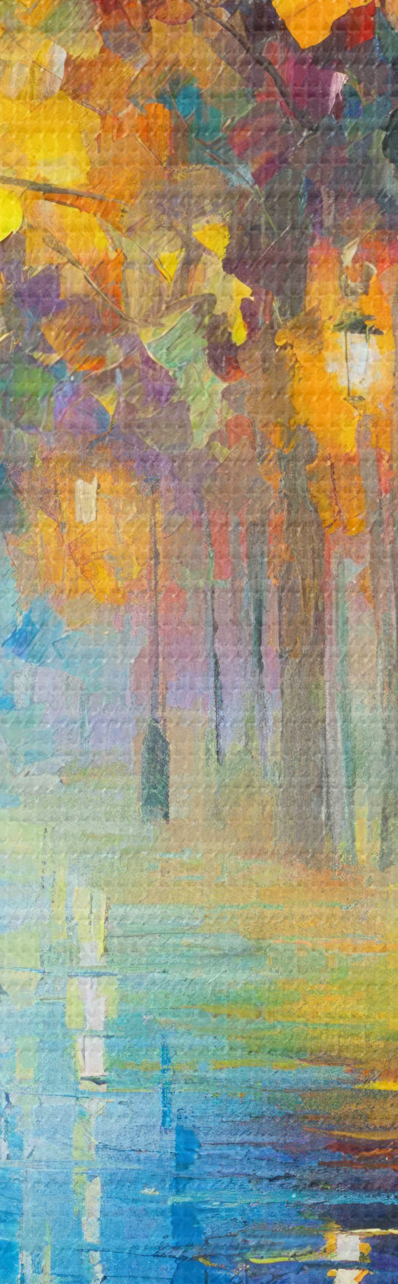 Drobny splot nici na tym płótnie przypomina powierzchnię profesjonalnych płócien artystycznych.