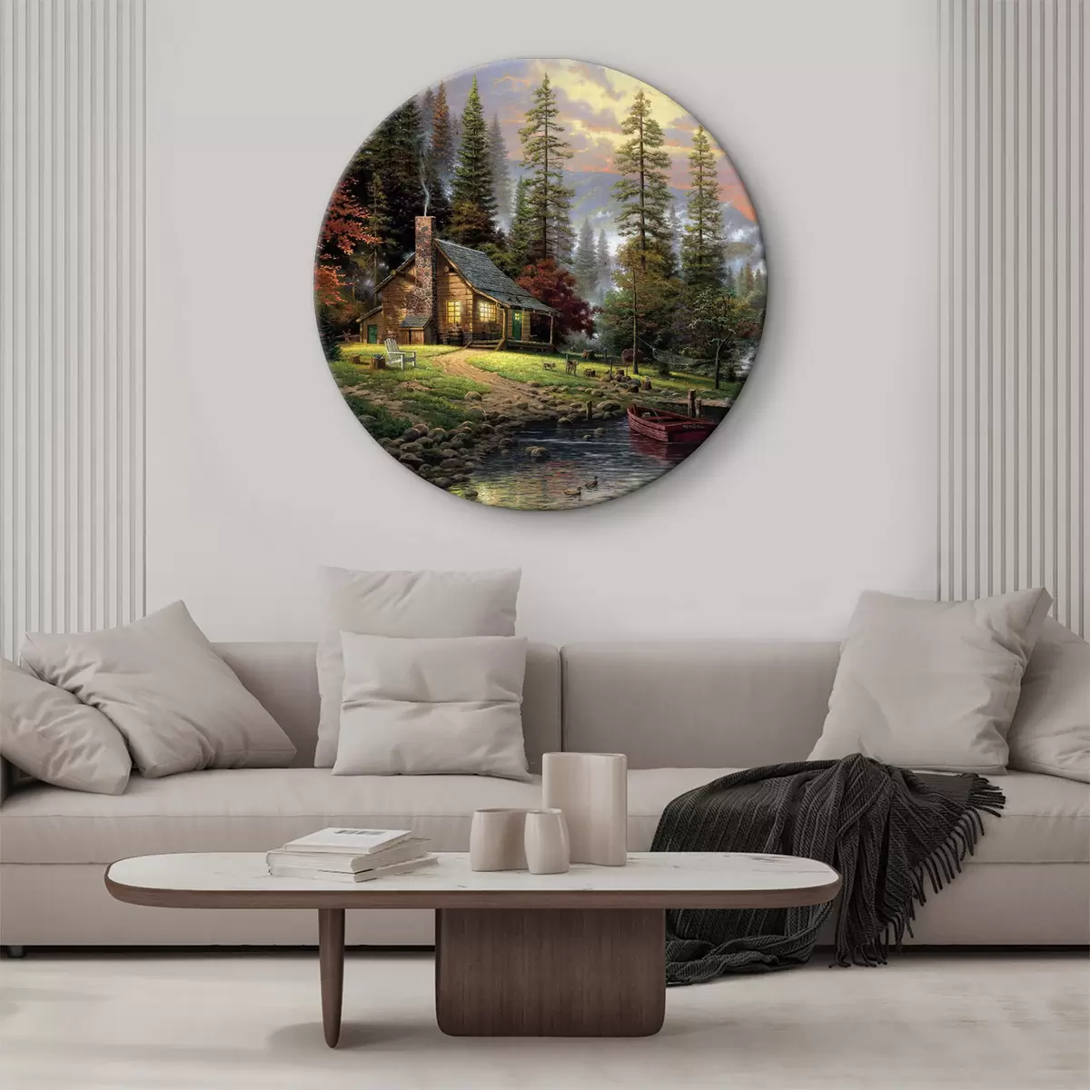 Okrągły obraz Chata rybacka w lesie w pobliżu strumienia Nr r15556