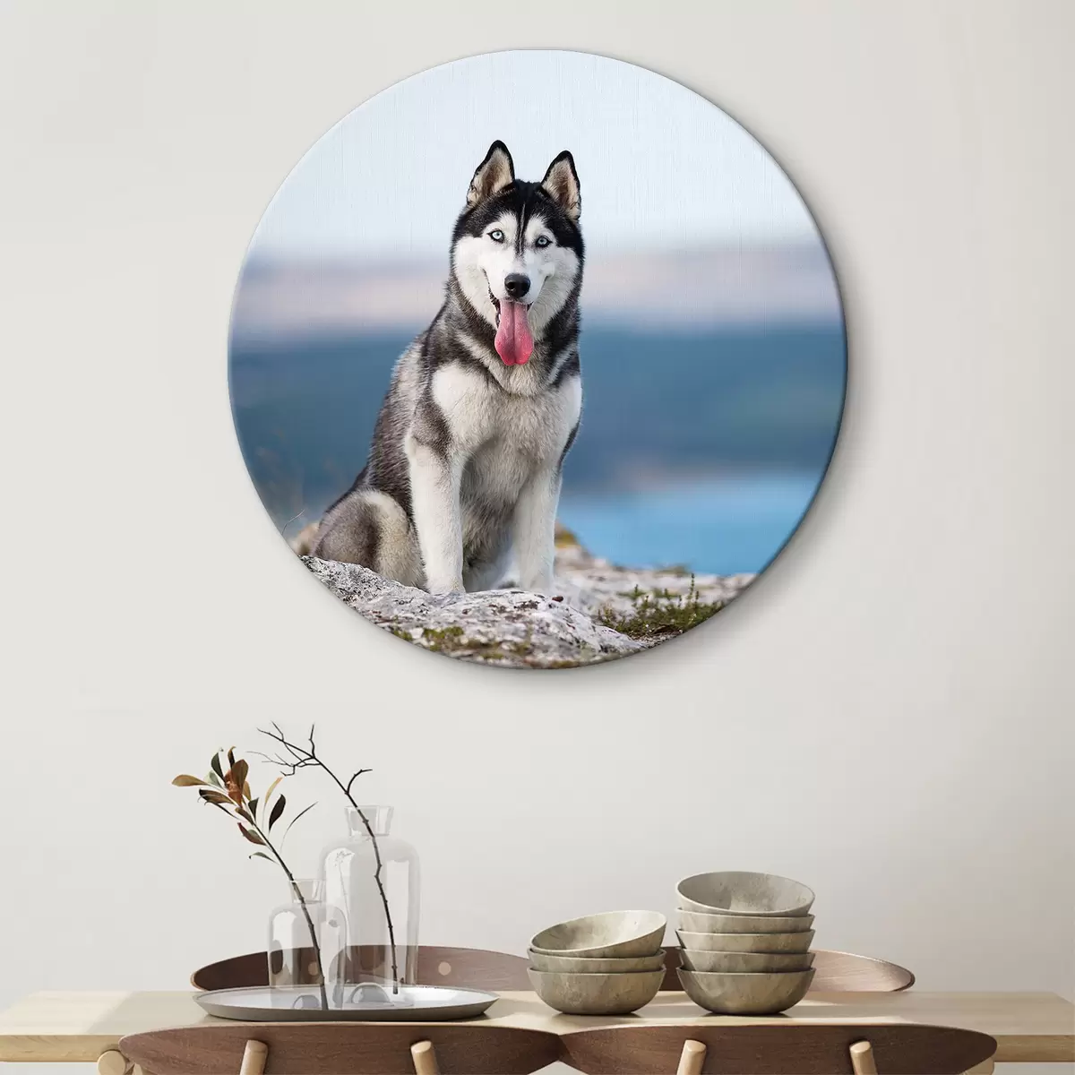 Okrągły obraz Niebo, woda i pies Nr r15711