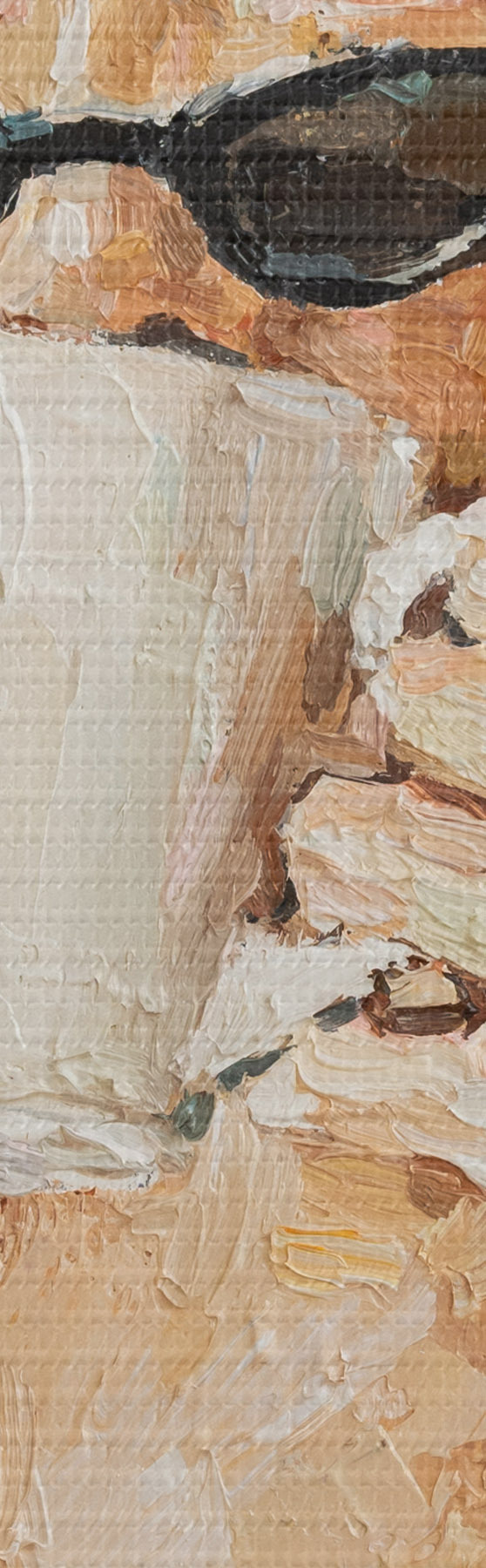 Drobny splot nici na tym płótnie przypomina powierzchnię profesjonalnych płócien artystycznych.