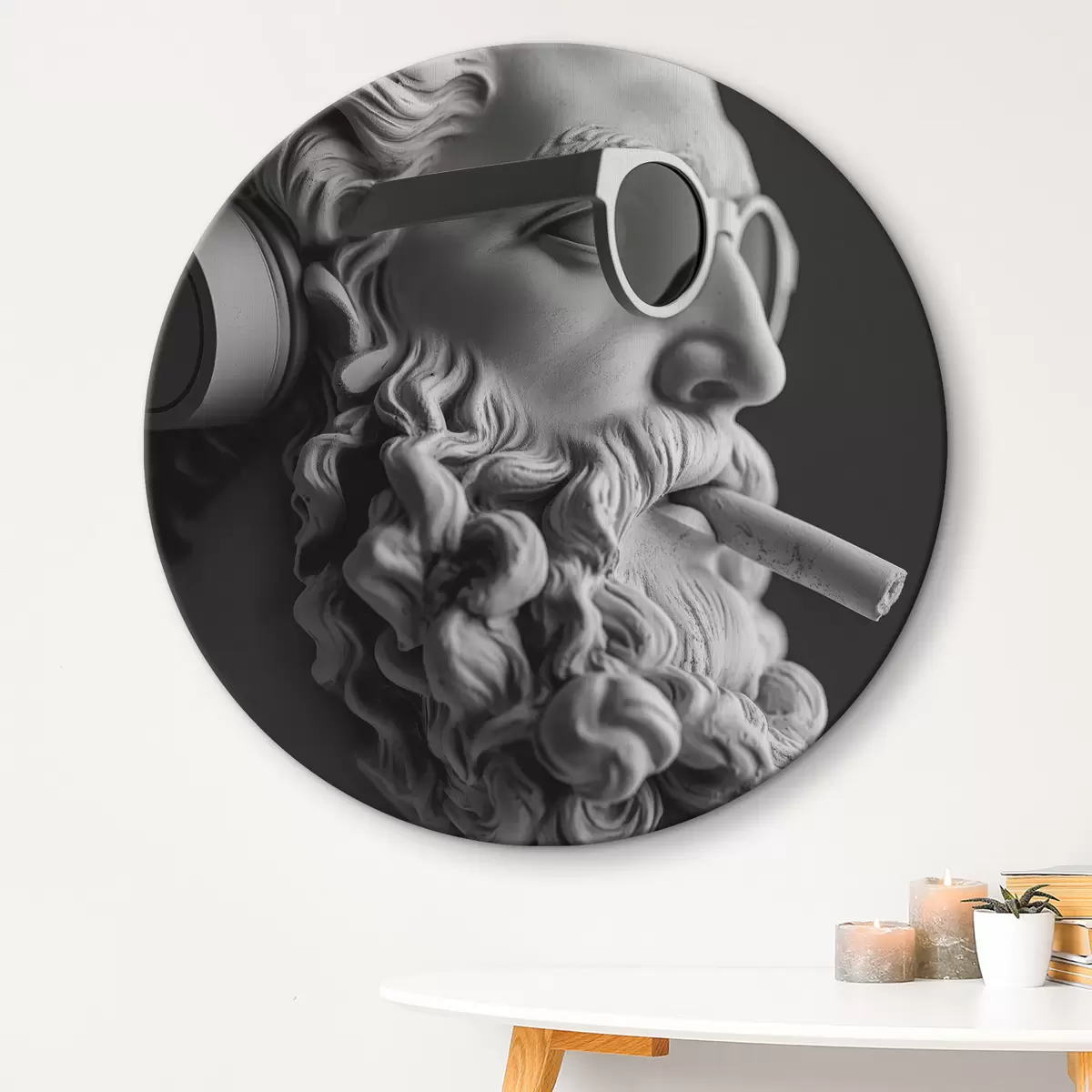 Okrągłe obrazy czarno-biała starożytna grecka rzeźba Zeusa w nowoczesnym stylu r26122
