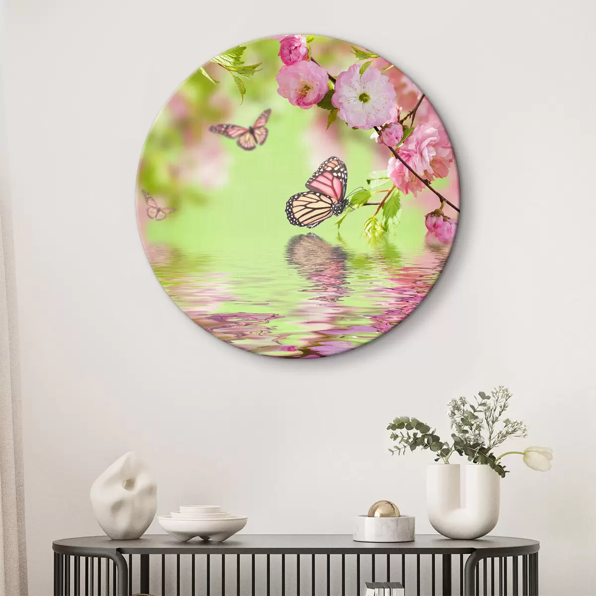 Okrągły obraz Zapylacz, kwiat i motyl Nr r27029