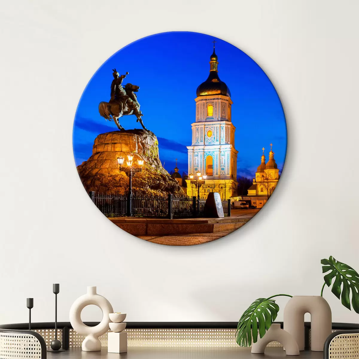Okrągłe obrazy Niebo, koń i budynek r32020