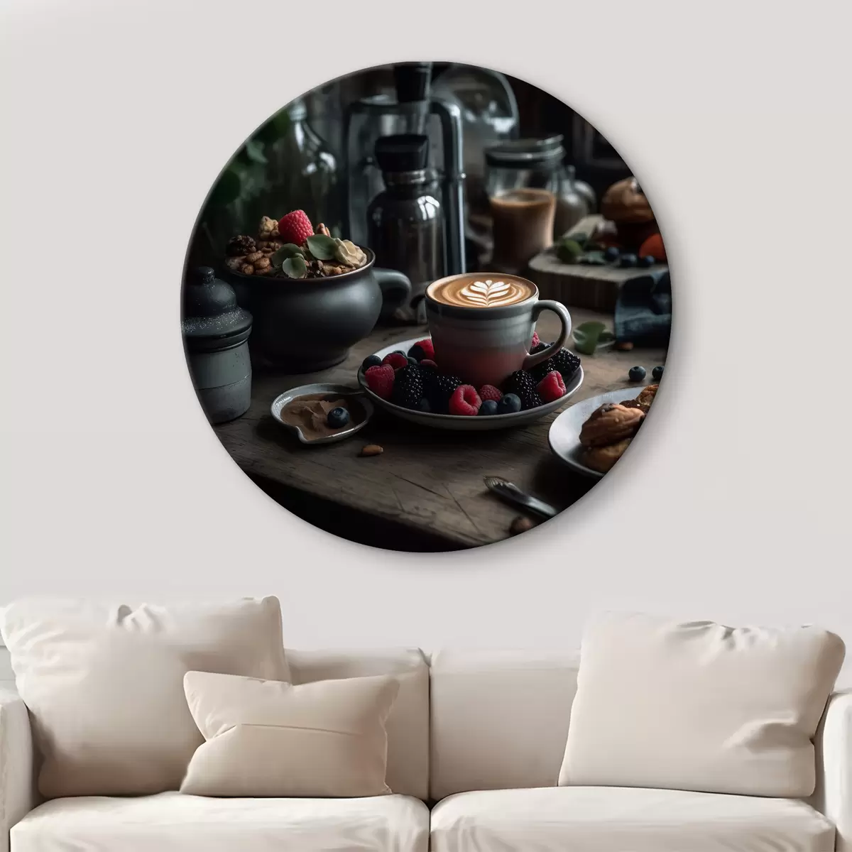 Okrągłe obrazy Zdrowe śniadanie z cappuccino r32154