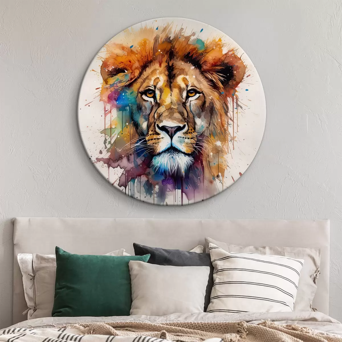 Okrągłe obrazy Lew w stylu akwareli r32325